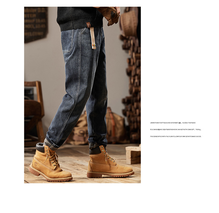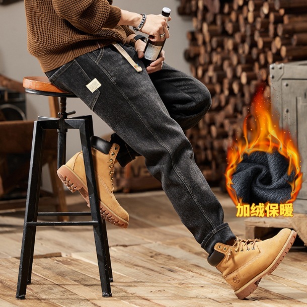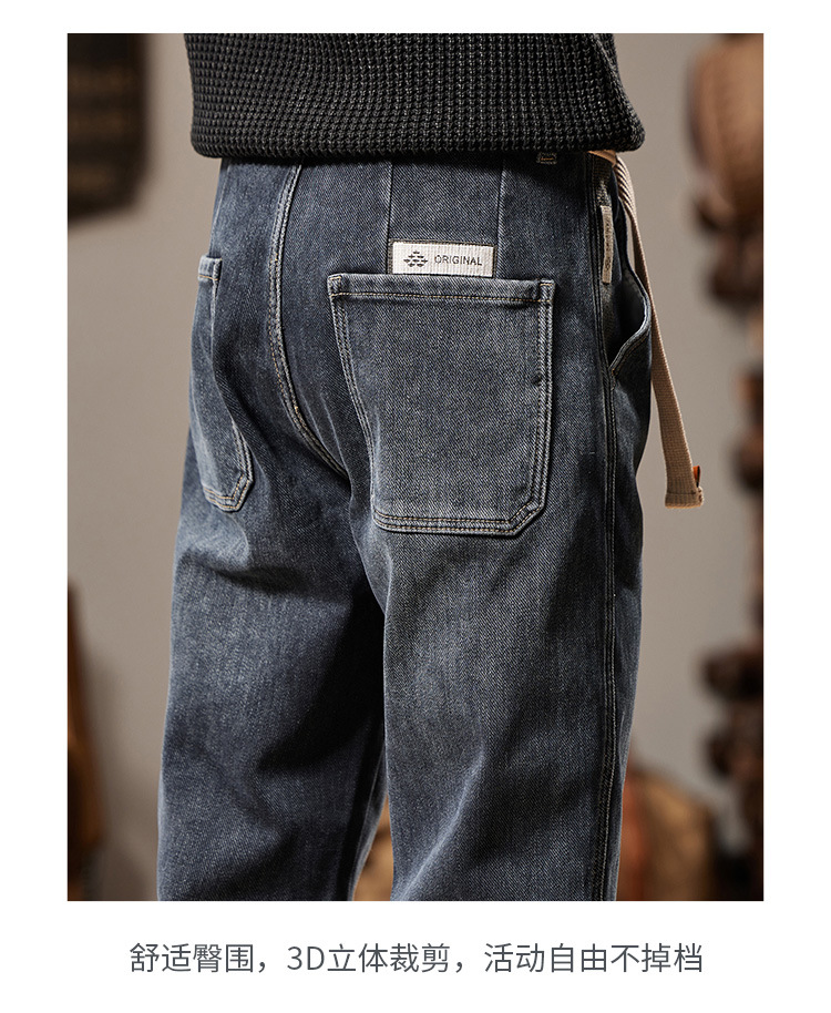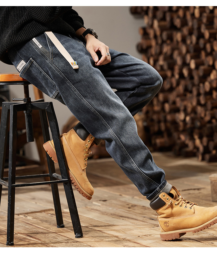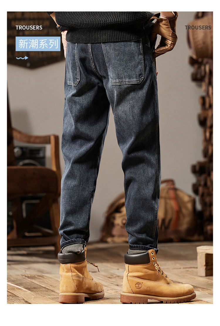 청바지 남자의 가을과 겨울 새로운 기모 두꺼운 느슨한 스트레이트 유행 브랜드 미국 스타일 레트로 캐주얼 스트레치 긴 바지스토어 가기