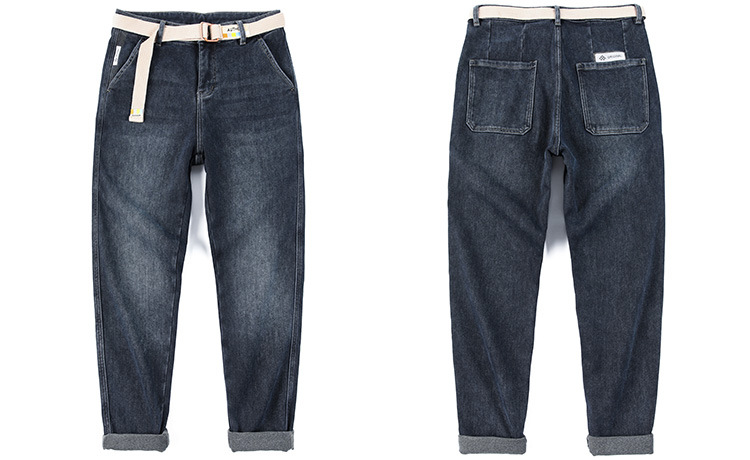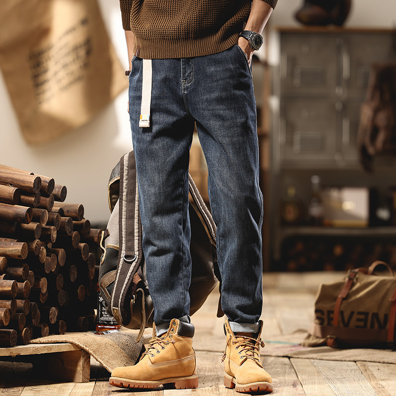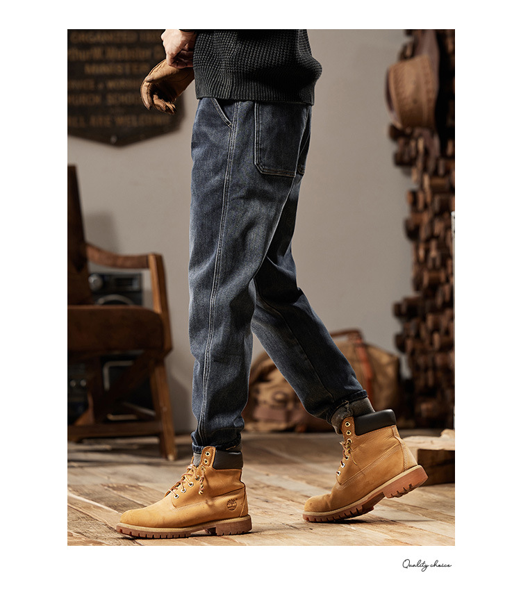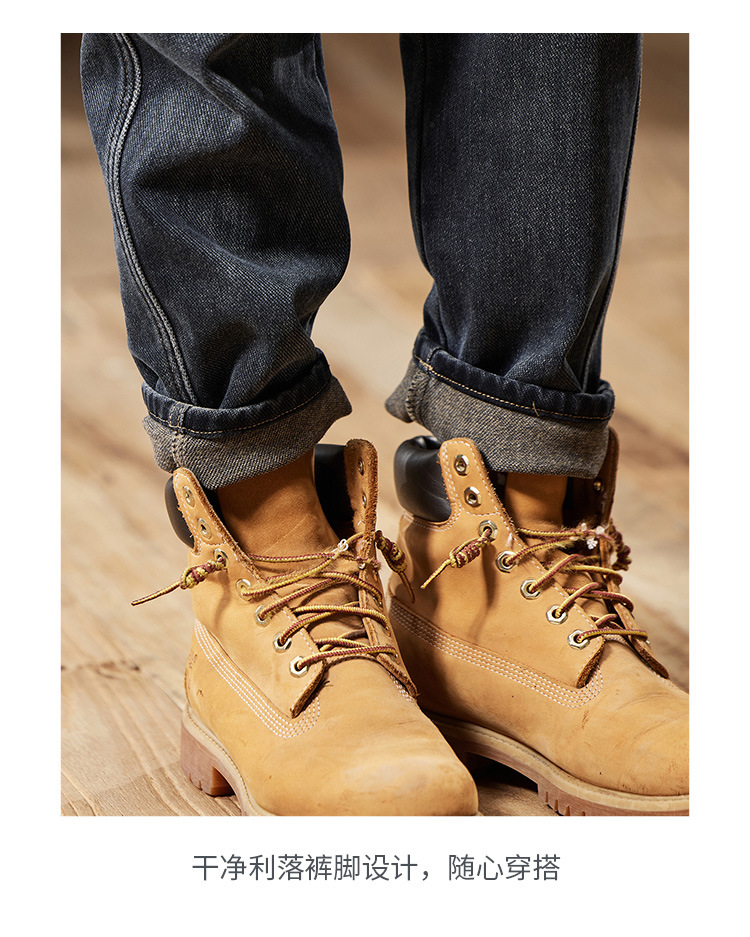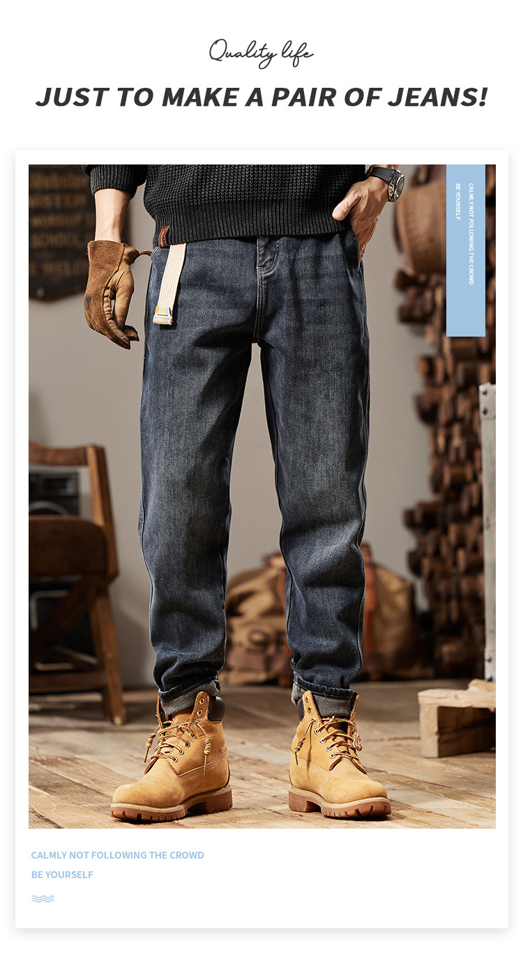 청바지 남자의 가을과 겨울 새로운 기모 두꺼운 느슨한 스트레이트 유행 브랜드 미국 스타일 레트로 캐주얼 스트레치 긴 바지스토어 가기
