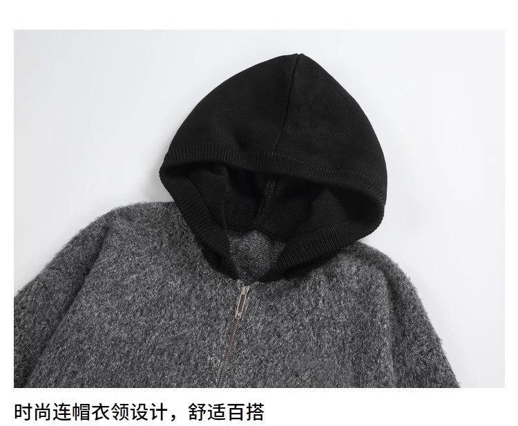 트렌디 한 브랜드 미국 분위기 느슨한 카디건 스웨터 2024 가을과 겨울 뉴 스트리트 후드 니트웨어 코트 탑