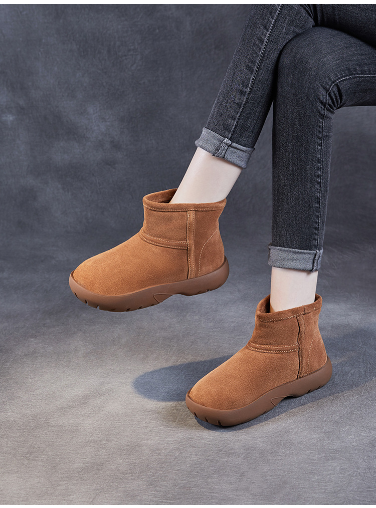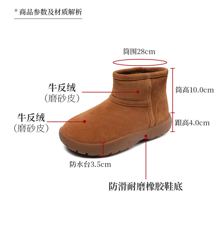 2024 새로운 기모 따뜻한 빵 큰면 신발 겨울 두꺼운 밑창 미끄럼 방지 짧은 부츠 진짜 소 가죽 미끄럼 방지 눈 여성 신발스토어 가기
