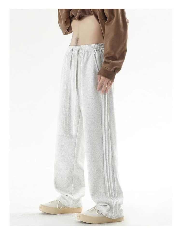 아메리칸 스타일 하이 스트리트 캐주얼 바지 남자 봄과 가을 새로운 도착 사이드 스트라이프 스포츠 스웨트 팬츠 느슨한 스트레이트 긴 바지