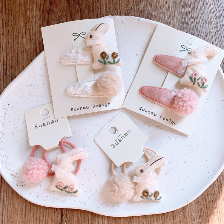 가을과 겨울 새로운 어린이 활 토끼 머리 공 머리핀 귀여운 소녀의 만화 헤어 밴드 헤어 로프스토어 가기