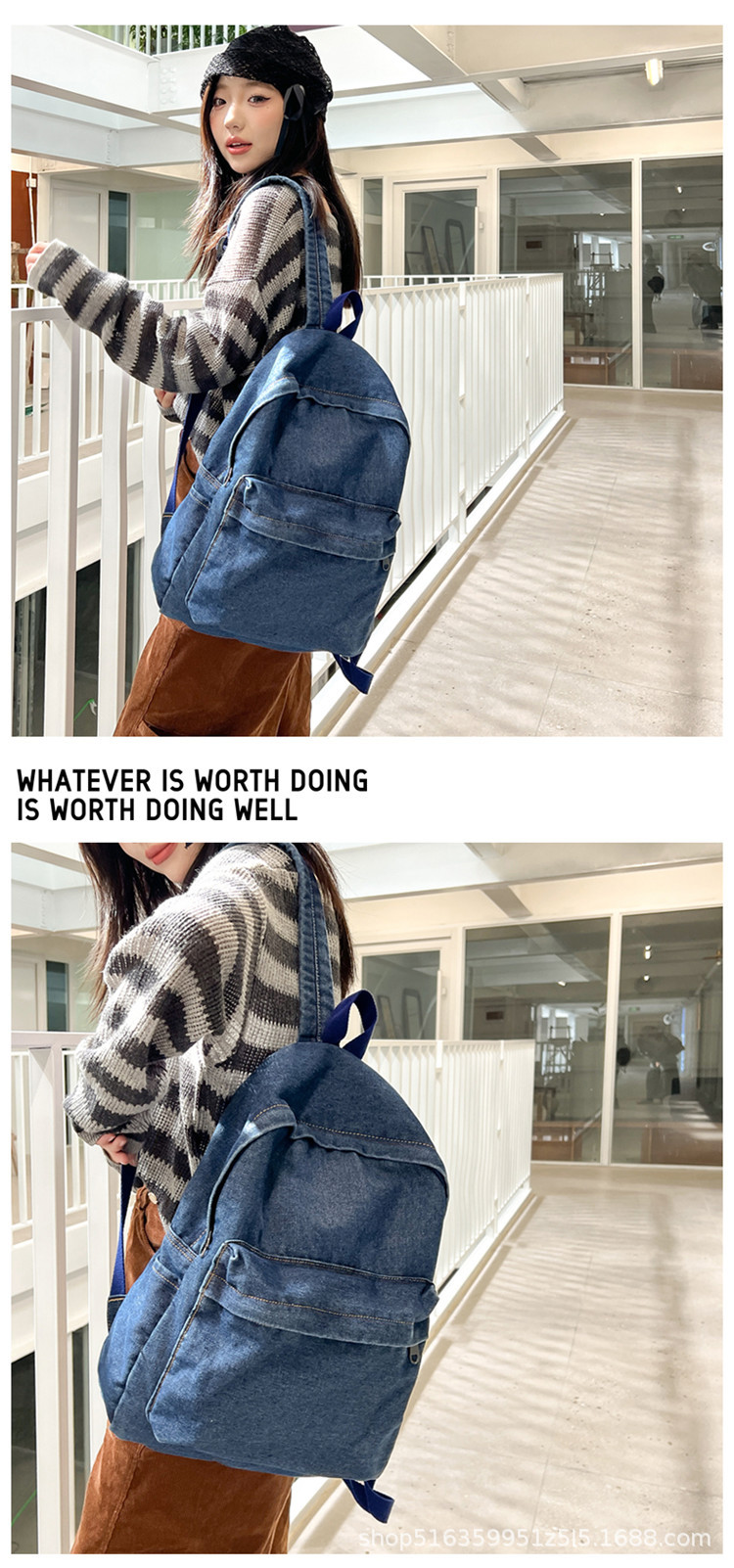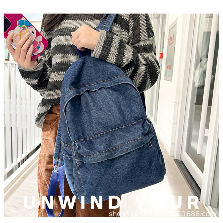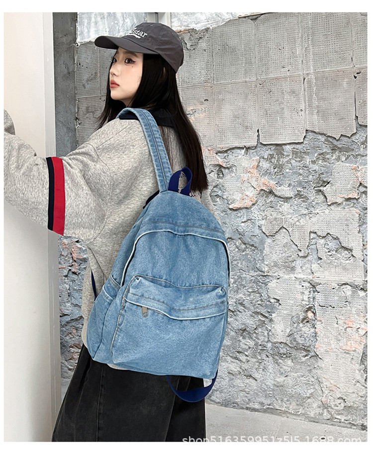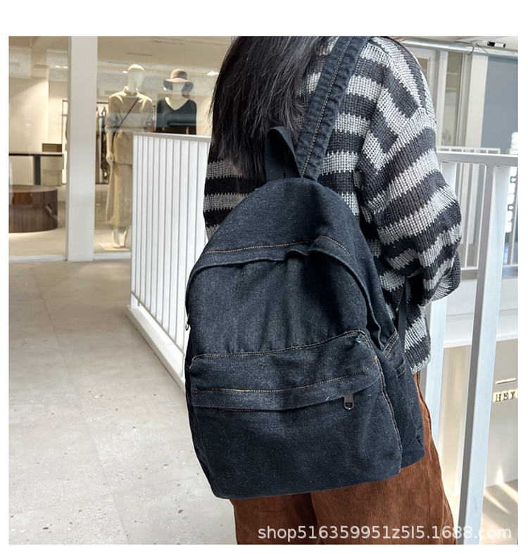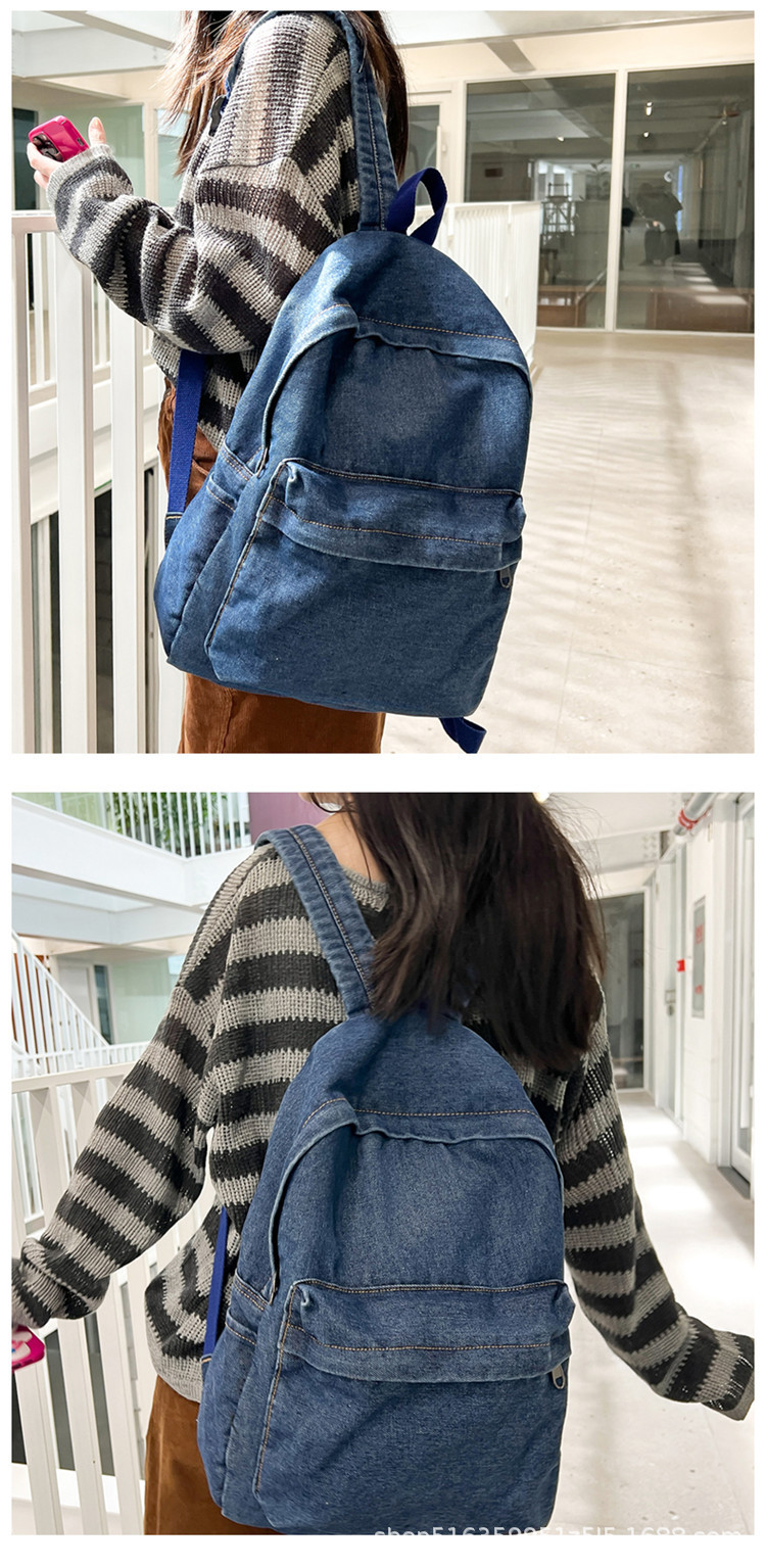 새로운 레트로 워싱 데님 백팩 한국 스타일 캐주얼 다용도 중고등학생 대용량 책가방 컴퓨터 가방스토어 가기