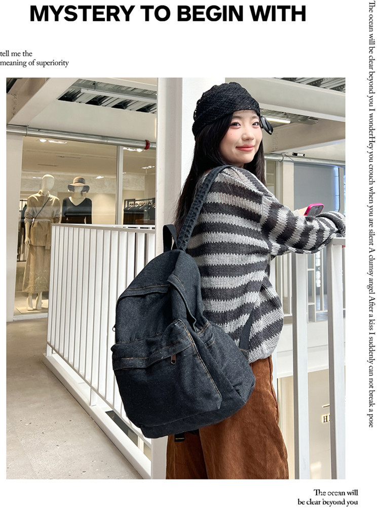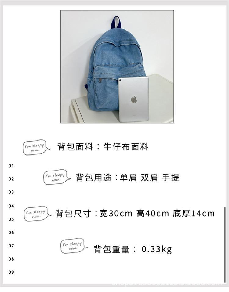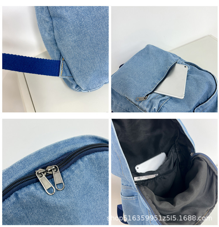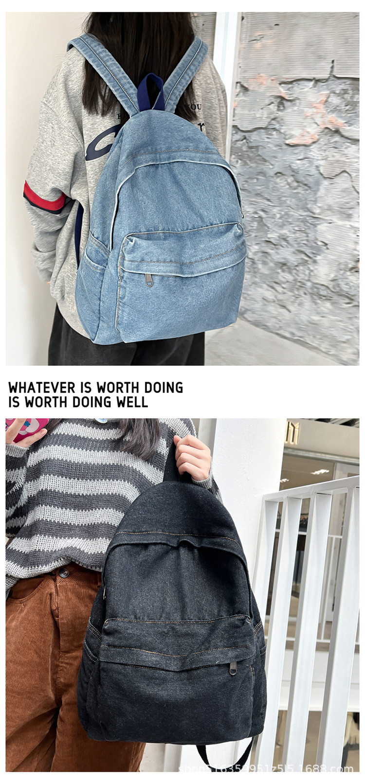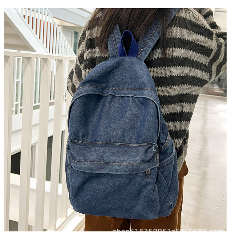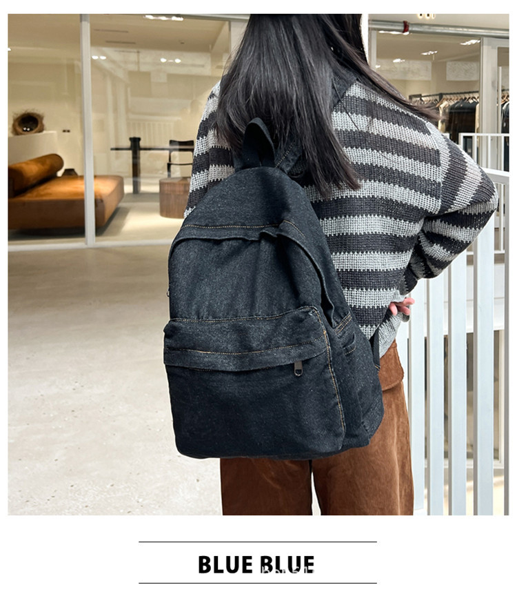 새로운 레트로 워싱 데님 백팩 한국 스타일 캐주얼 다용도 중고등학생 대용량 책가방 컴퓨터 가방스토어 가기