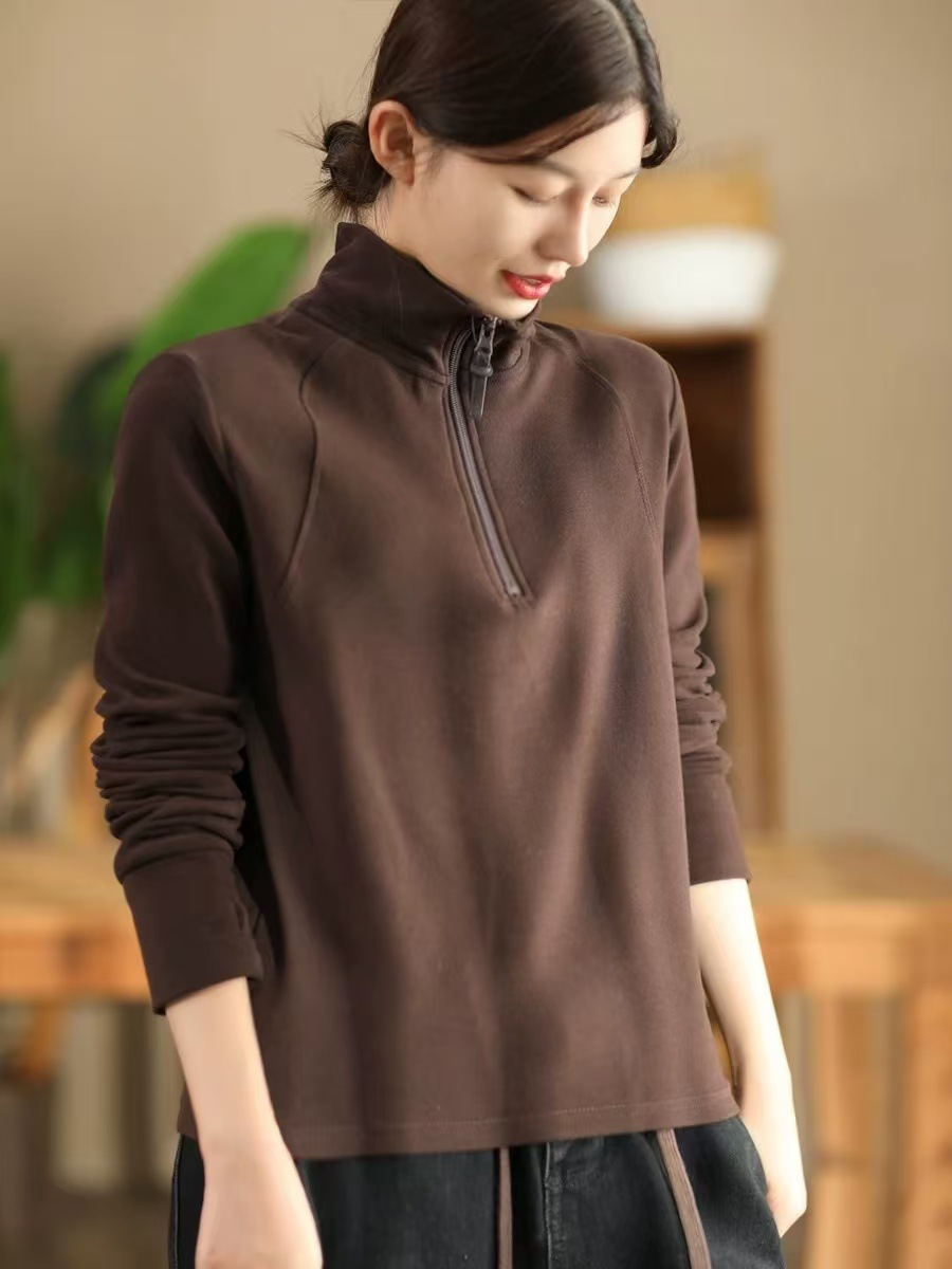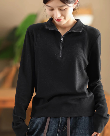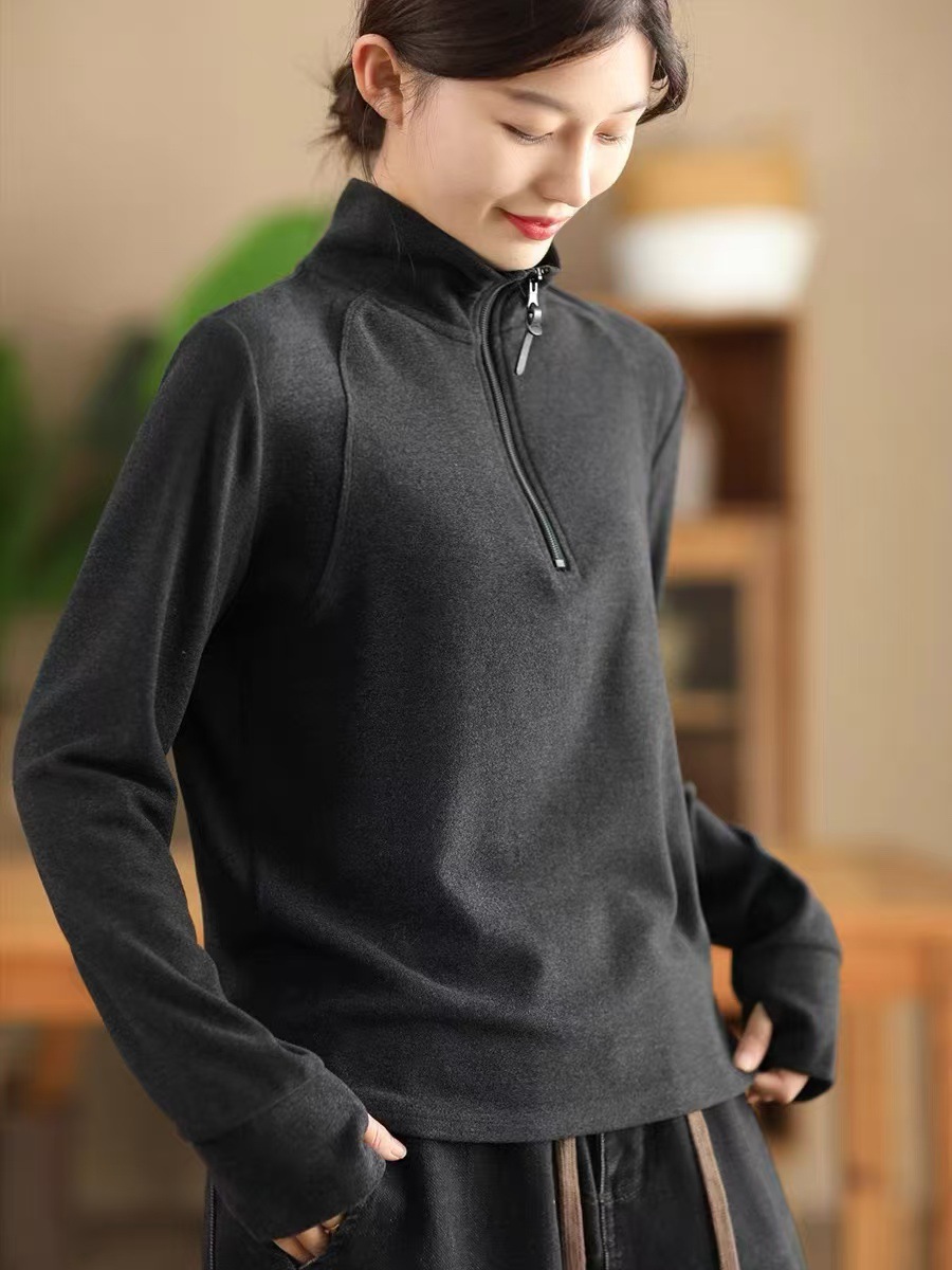 가을과 겨울 새로운 패션 양면 호주 벨벳 바닥 셔츠 여성의 반 지퍼 슬림 긴 소매 풀오버 따뜻한 스웨터 127스토어 가기