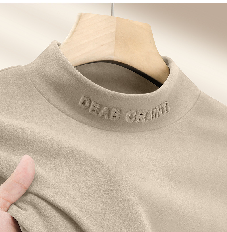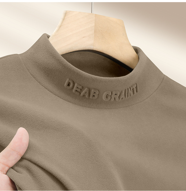 대외 무역 도매 중년 남성 가을과 겨울 단색 긴팔 티셔츠 조커 세미 하이 칼라 재킷 독일 벨벳 따뜻한베이스 셔츠
