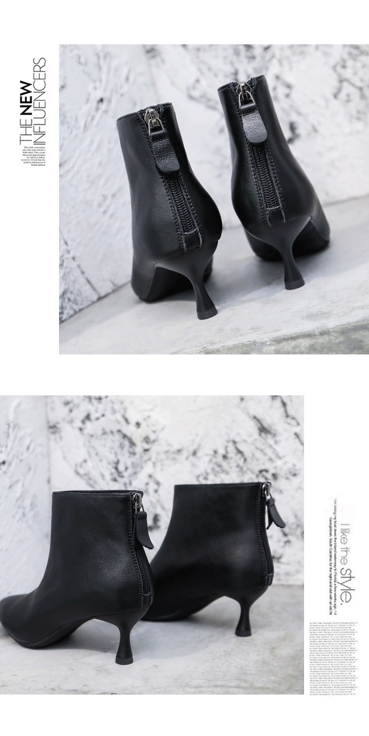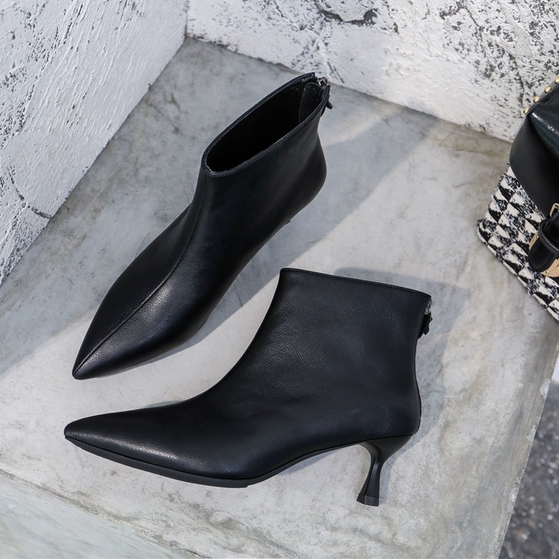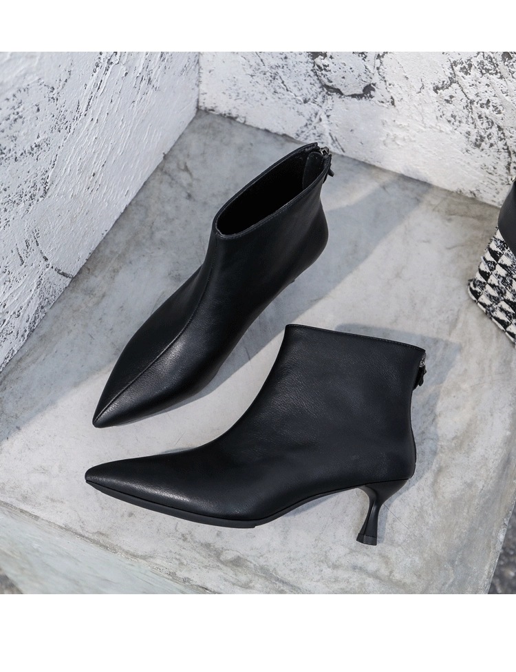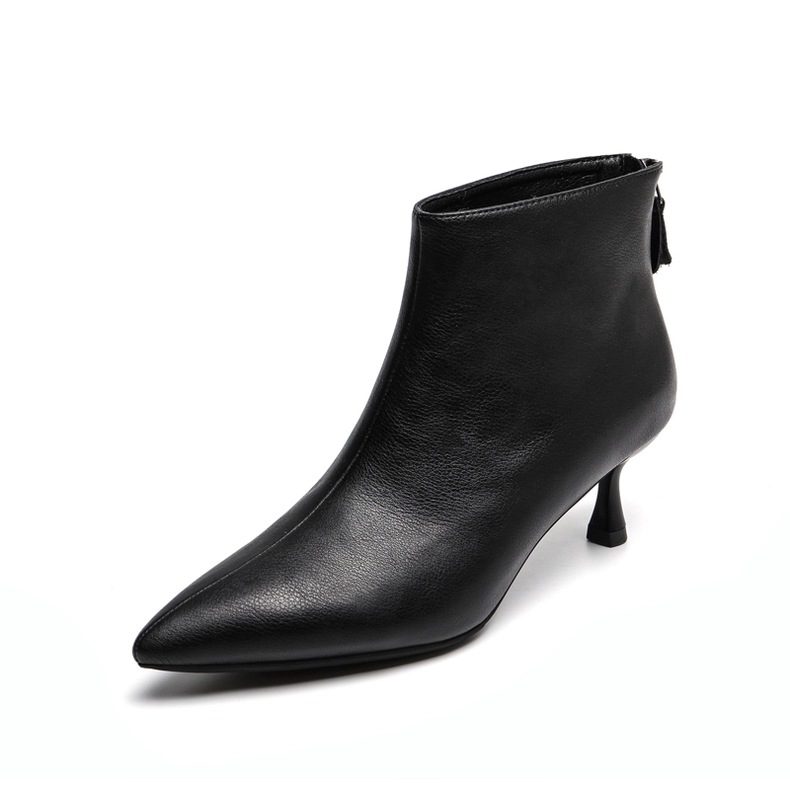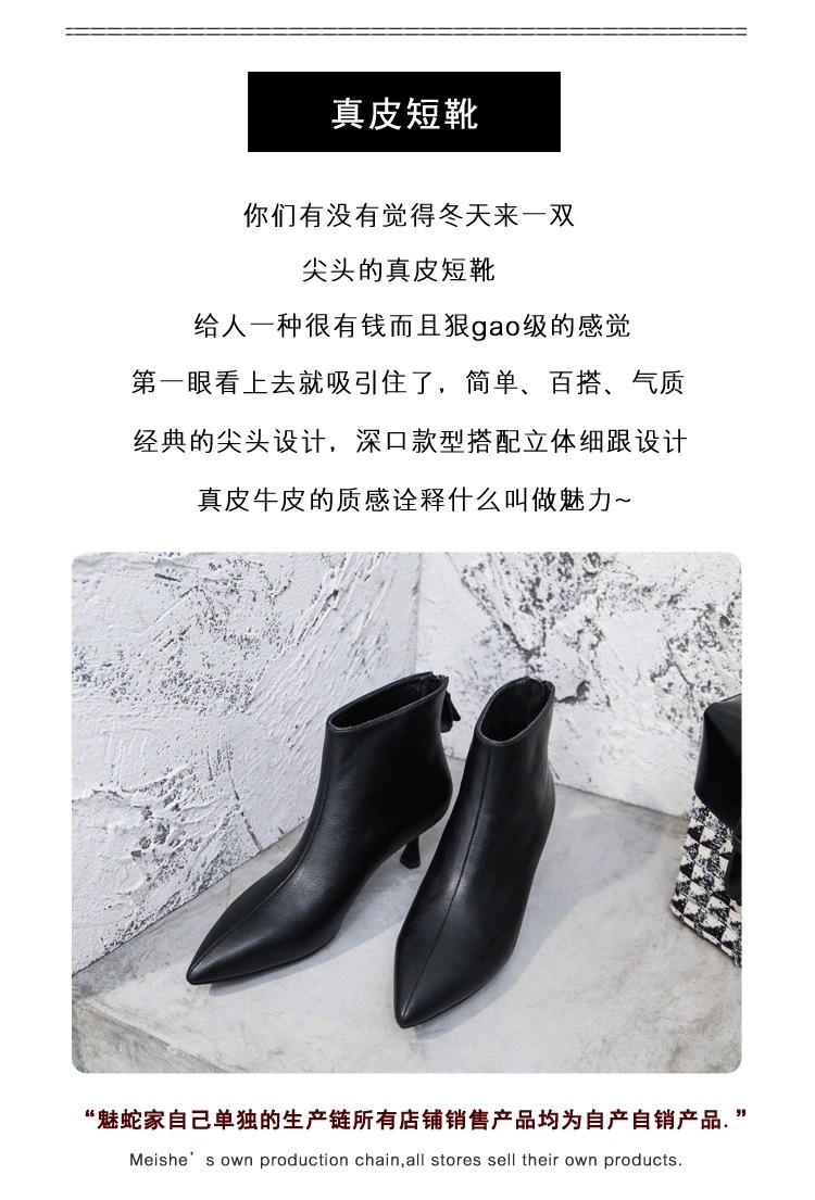 뾰족한 스틸레토 힐 순수 가죽 짧은 부츠 여성 하이힐 겨울 2024 새로운 가죽 소프트 카우히드화 기모 부츠 여성스토어 가기