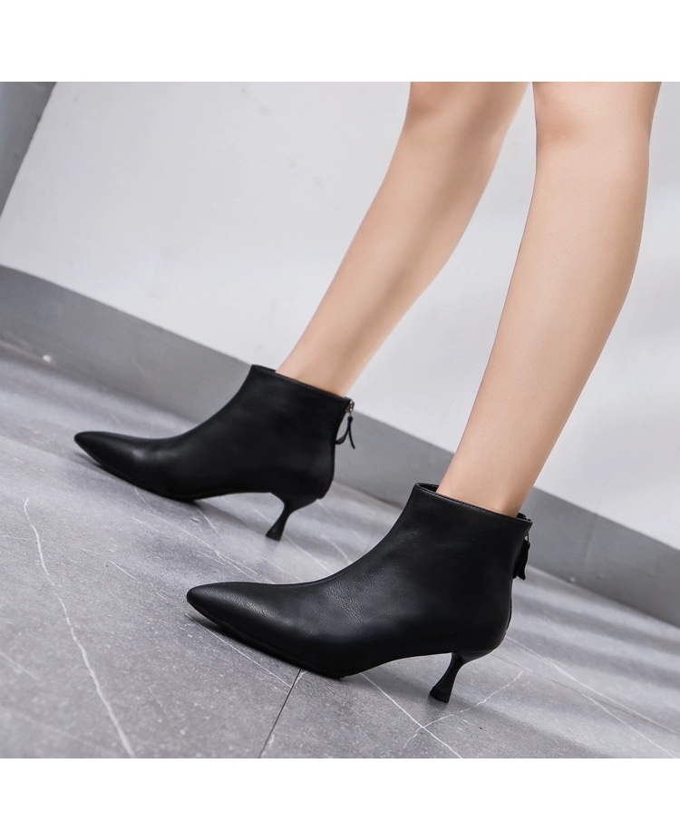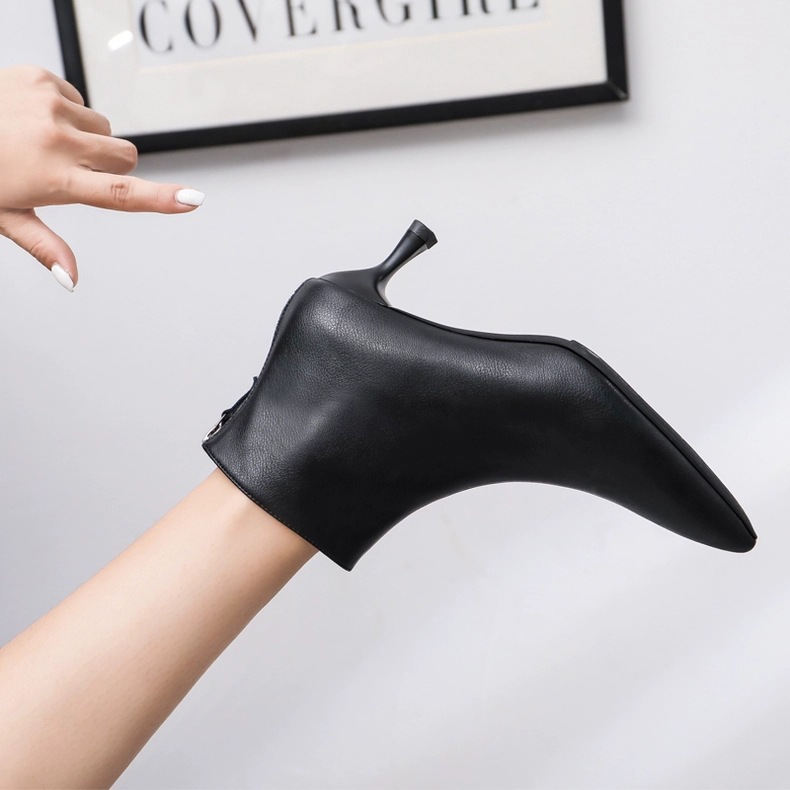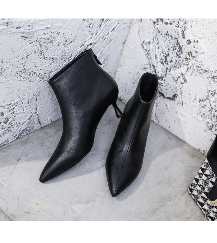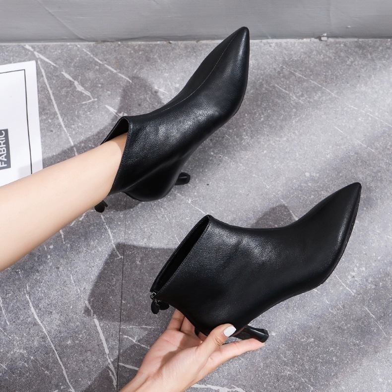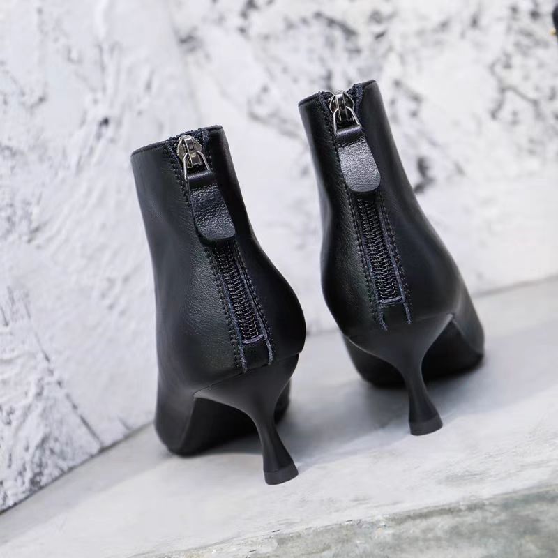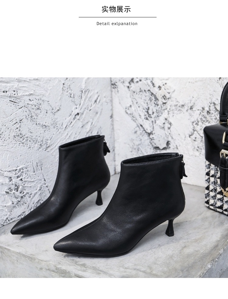 뾰족한 스틸레토 힐 순수 가죽 짧은 부츠 여성 하이힐 겨울 2024 새로운 가죽 소프트 카우히드화 기모 부츠 여성스토어 가기