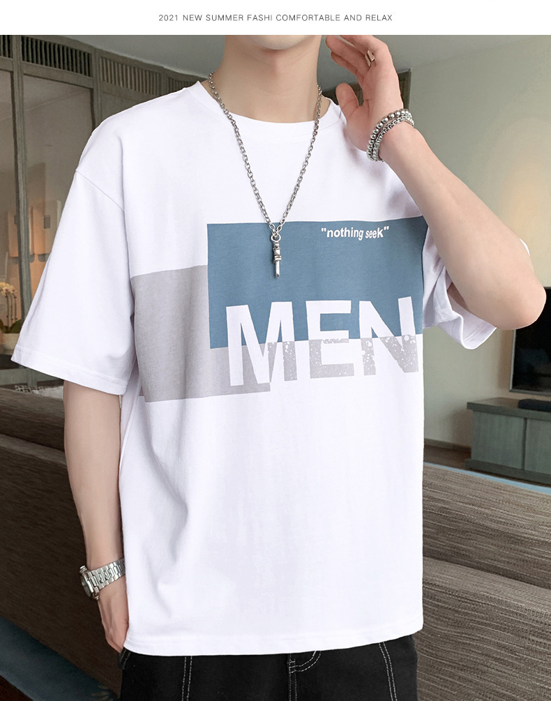 반팔 티셔츠 남자 2023 년 새 여름 느슨한 올 매치 의류 흰색 반팔 티셔츠 남성용 트렌디 브랜드 탑스토어 가기