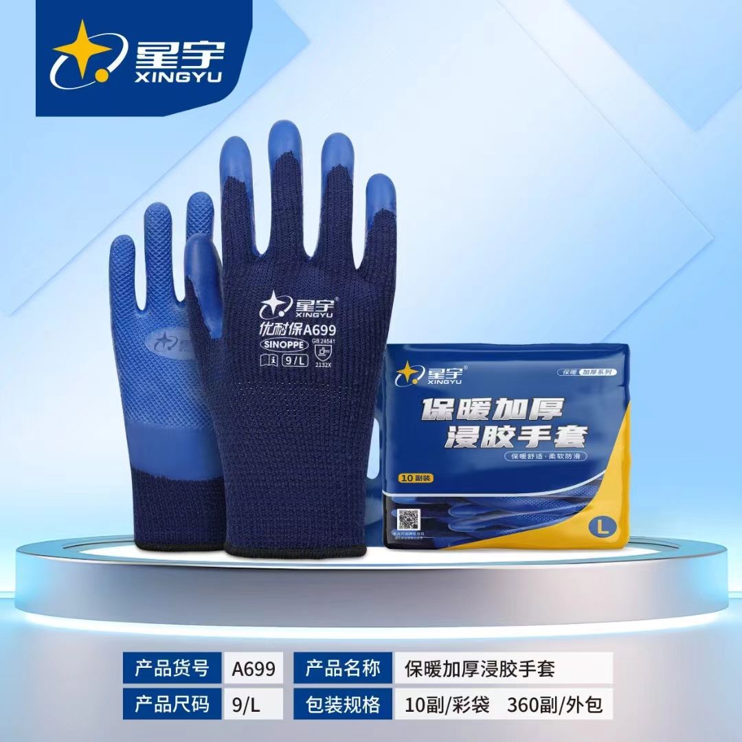 10 쌍/Xingyu A699 노동 보호 기모 따뜻한 미끄럼 방지 패딩 겨울 방한 건설 현장 따뜻한 고무 장갑