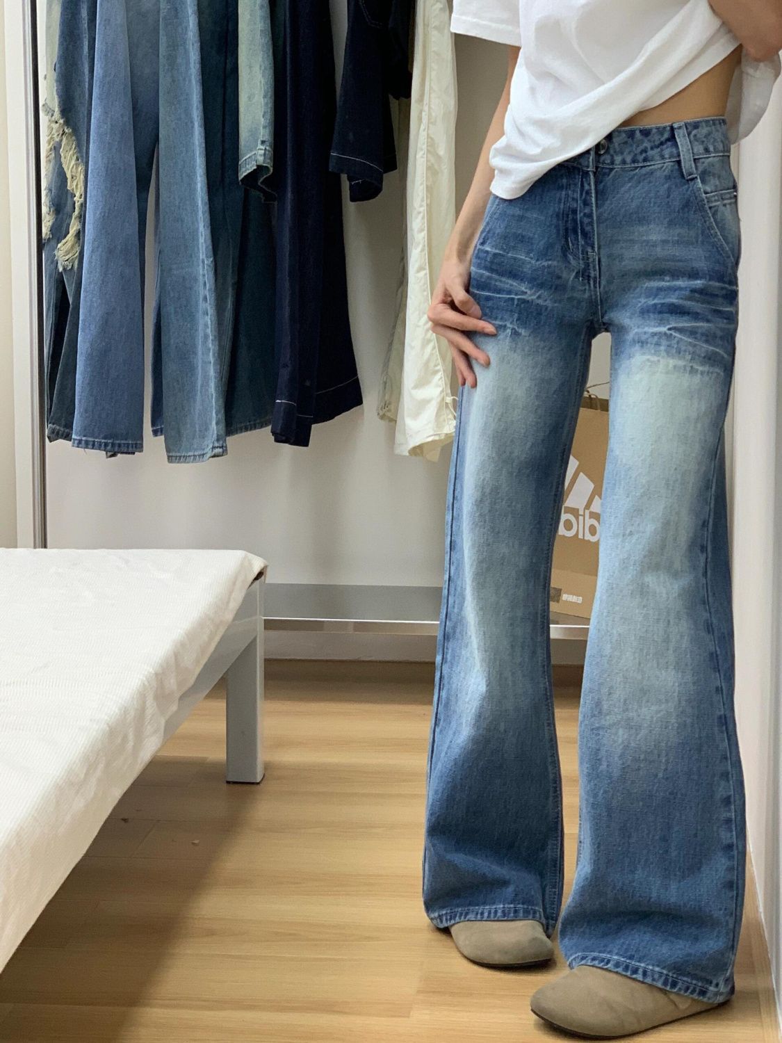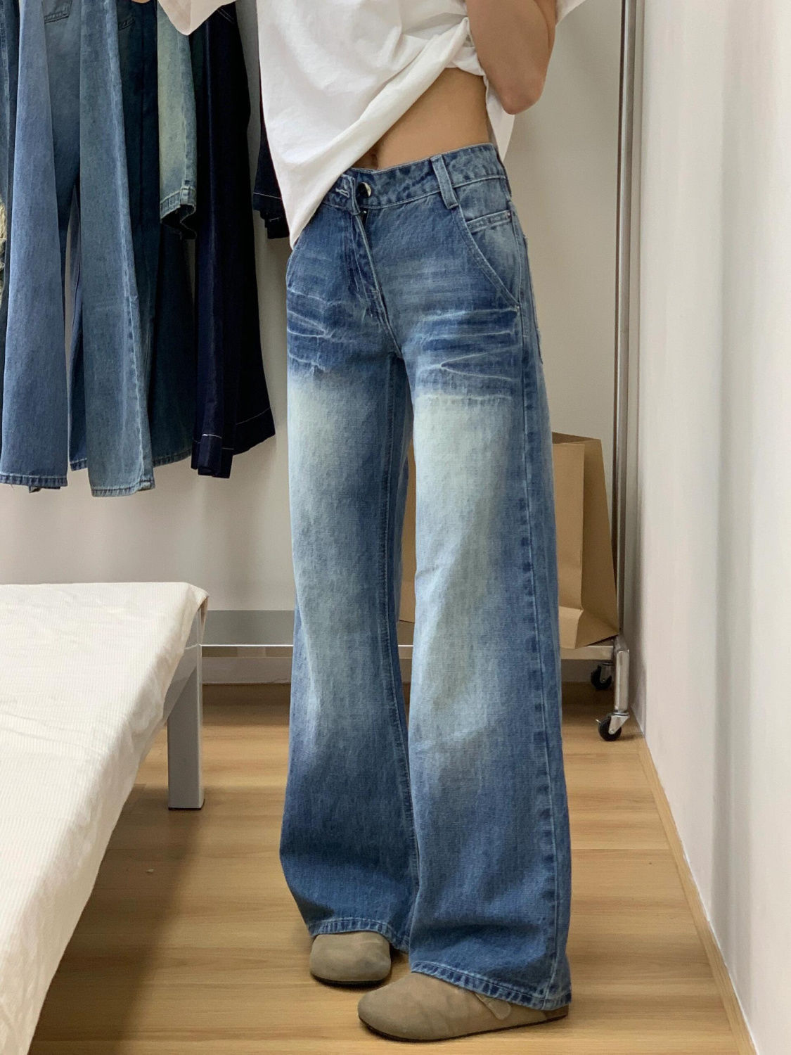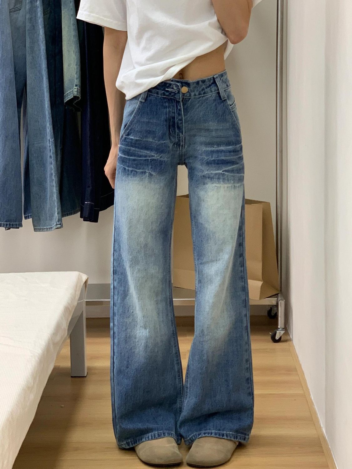 여성용 스트레이트 진, 로우 웨이스트, 슬림핏, 키 작은 사람들을 위한 바지, 여성용 루즈핏, 살을 가려주는 캐주얼 와이드 레그 스트레이트 팬츠스토어 가기