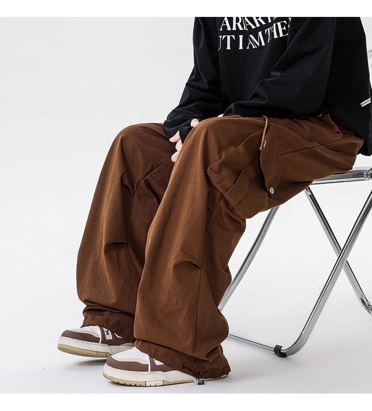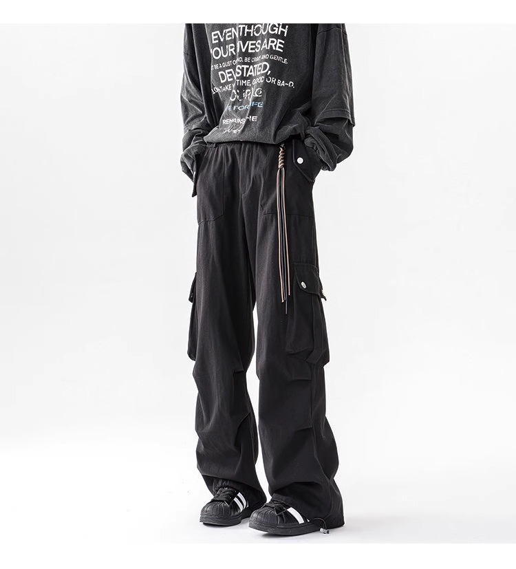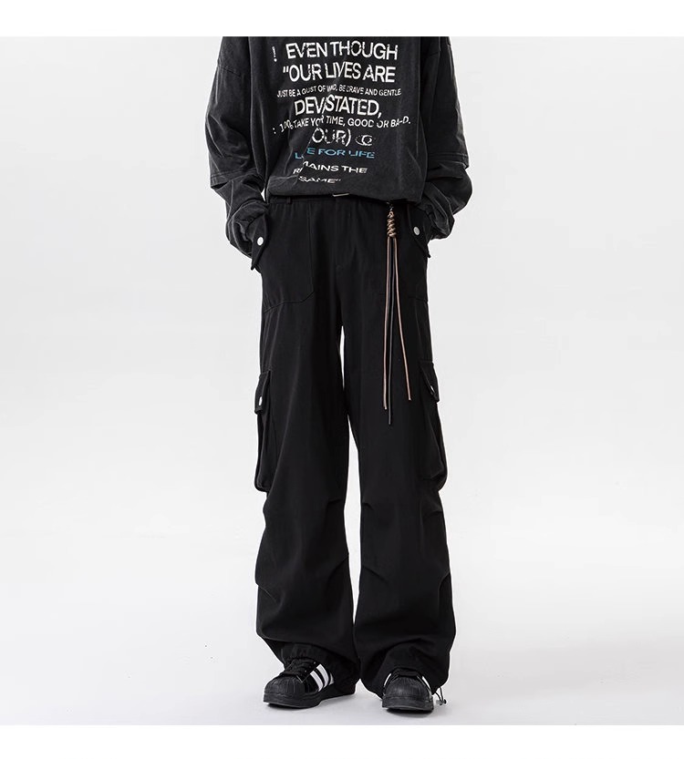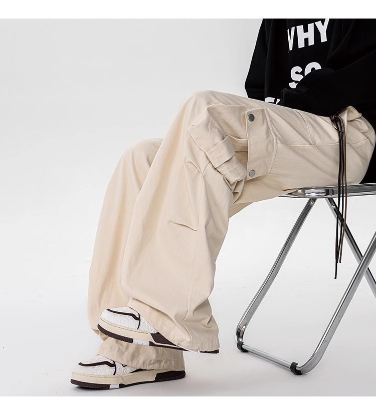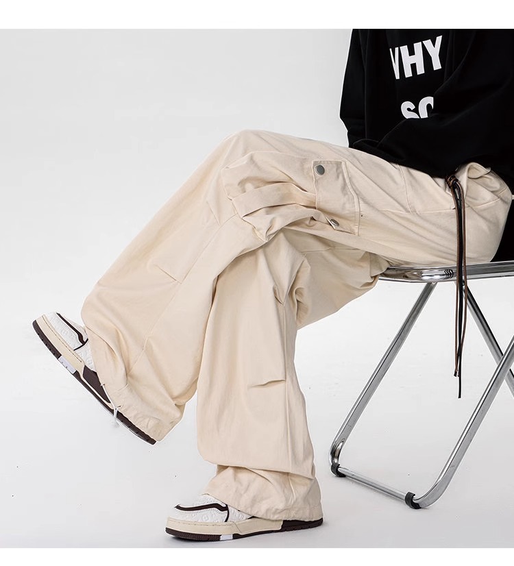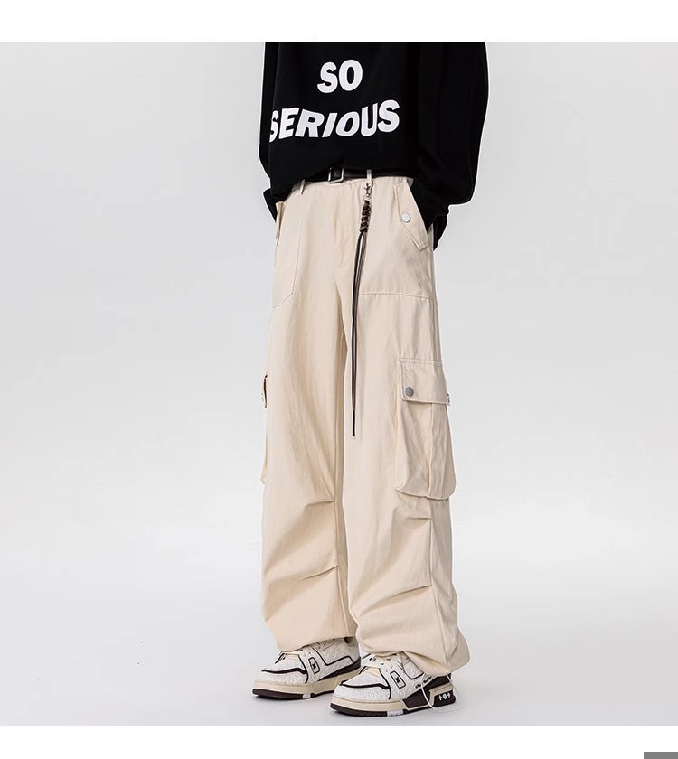 아메리칸 스타일 유행 브랜드 작업복 캐주얼 바지 남성 봄과 가을 새로운 느슨한 넓은 다리 스트레이트 낙하산 바지 멀티 포켓 긴 바지스토어 가기