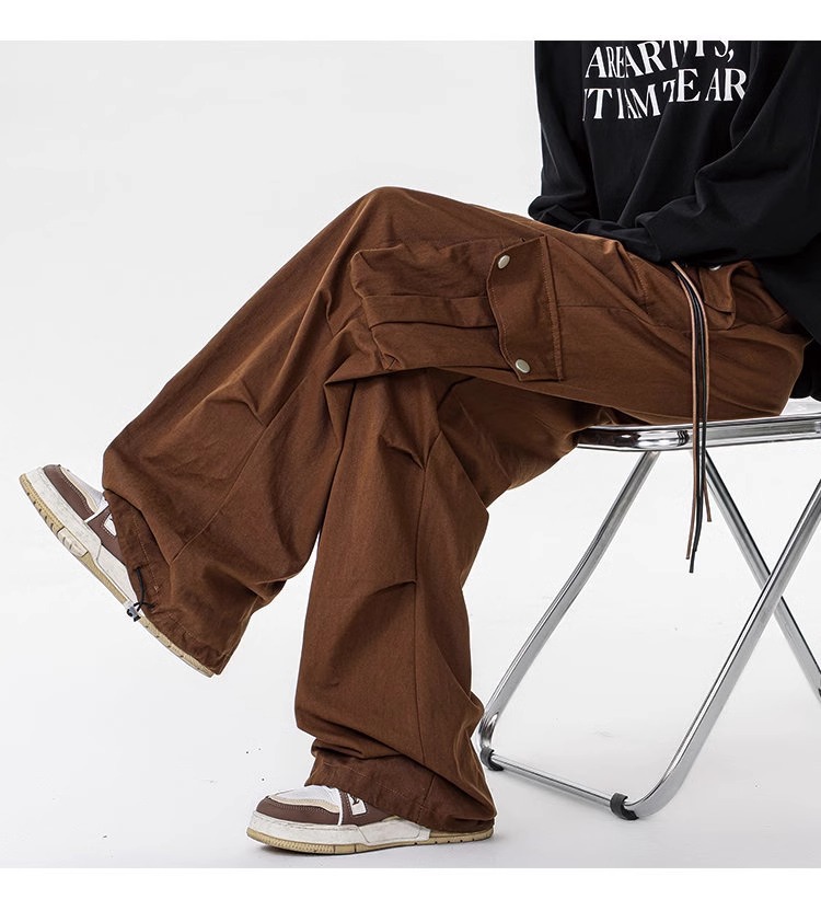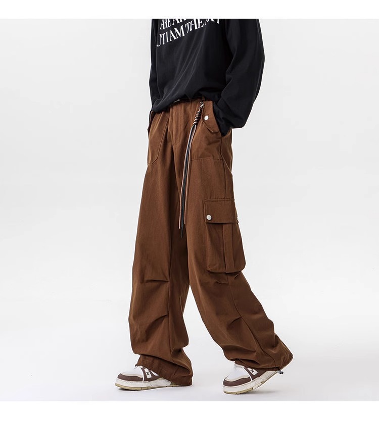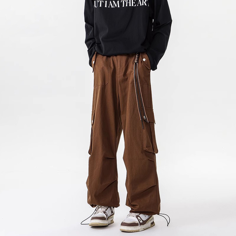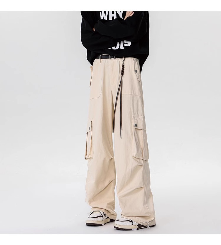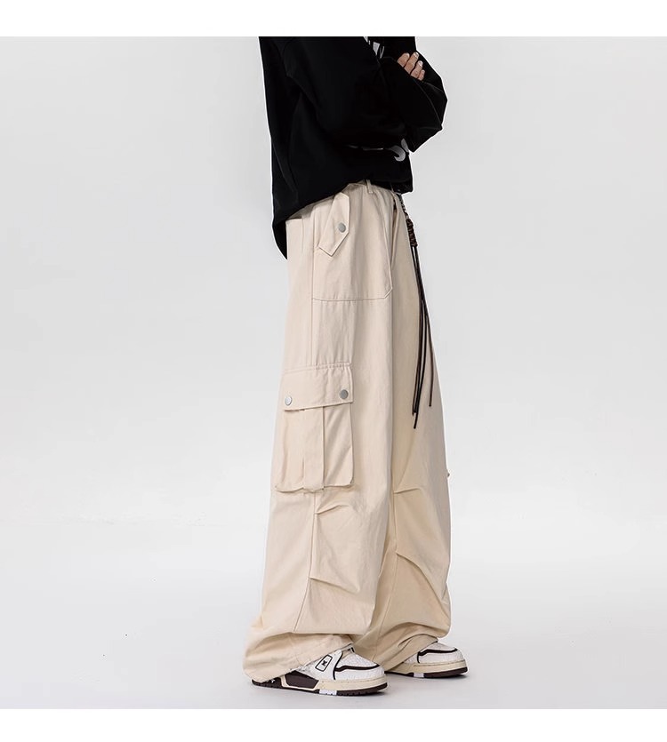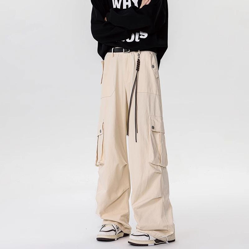 아메리칸 스타일 유행 브랜드 작업복 캐주얼 바지 남성 봄과 가을 새로운 느슨한 넓은 다리 스트레이트 낙하산 바지 멀티 포켓 긴 바지