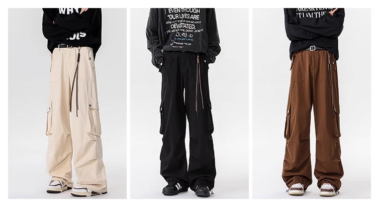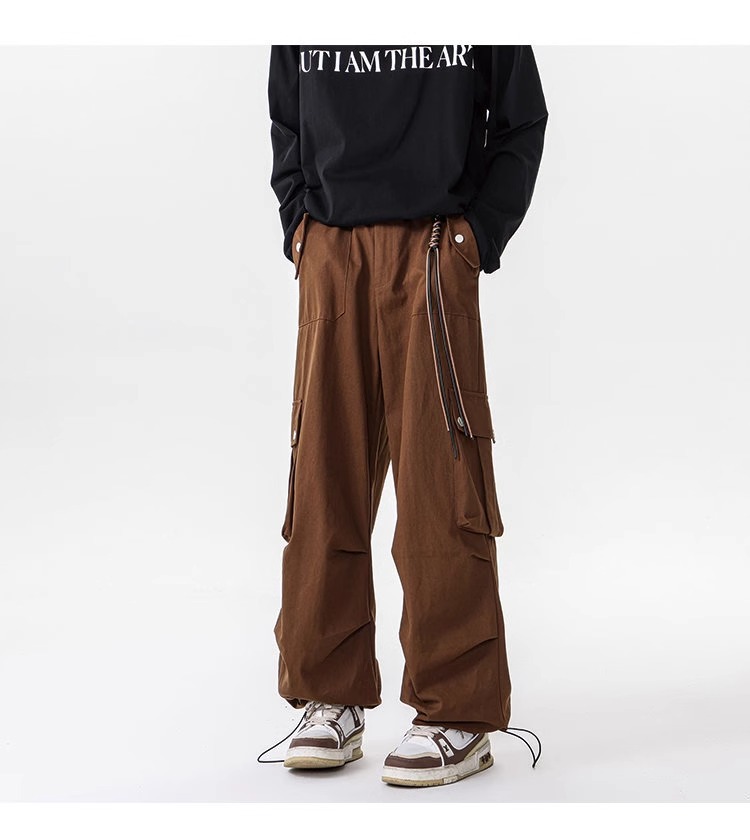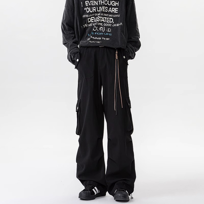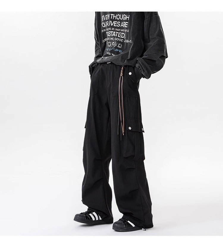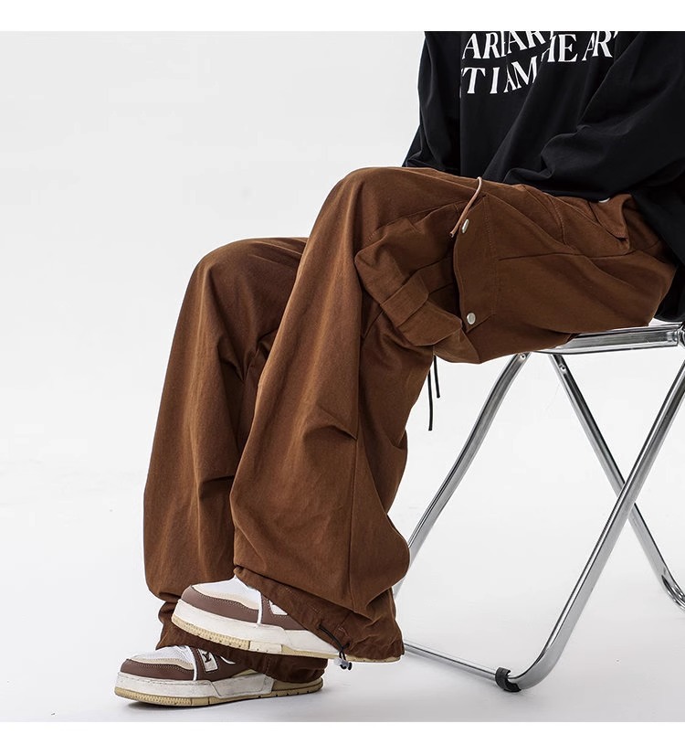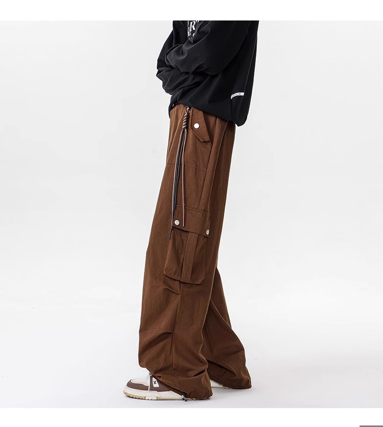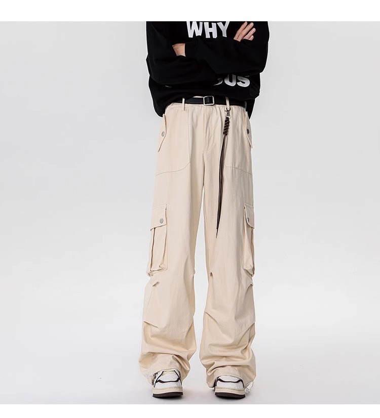 아메리칸 스타일 유행 브랜드 작업복 캐주얼 바지 남성 봄과 가을 새로운 느슨한 넓은 다리 스트레이트 낙하산 바지 멀티 포켓 긴 바지
