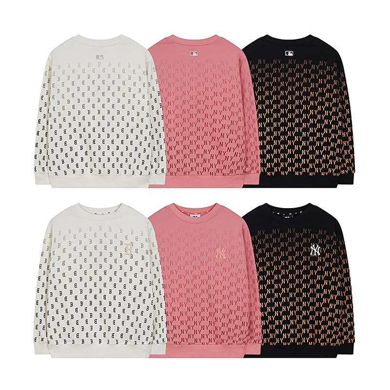 MLB 뉴욕 양키스 남성과 여성 커플 대학 스타일 그라데이션 노안 라운드 넥 풀오버 패션 긴팔 스웨트 셔츠 2024스토어 가기