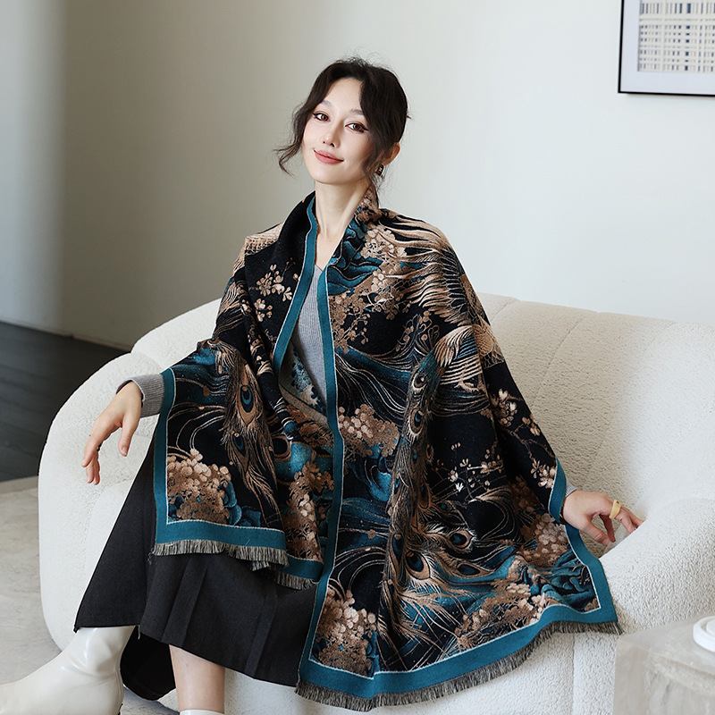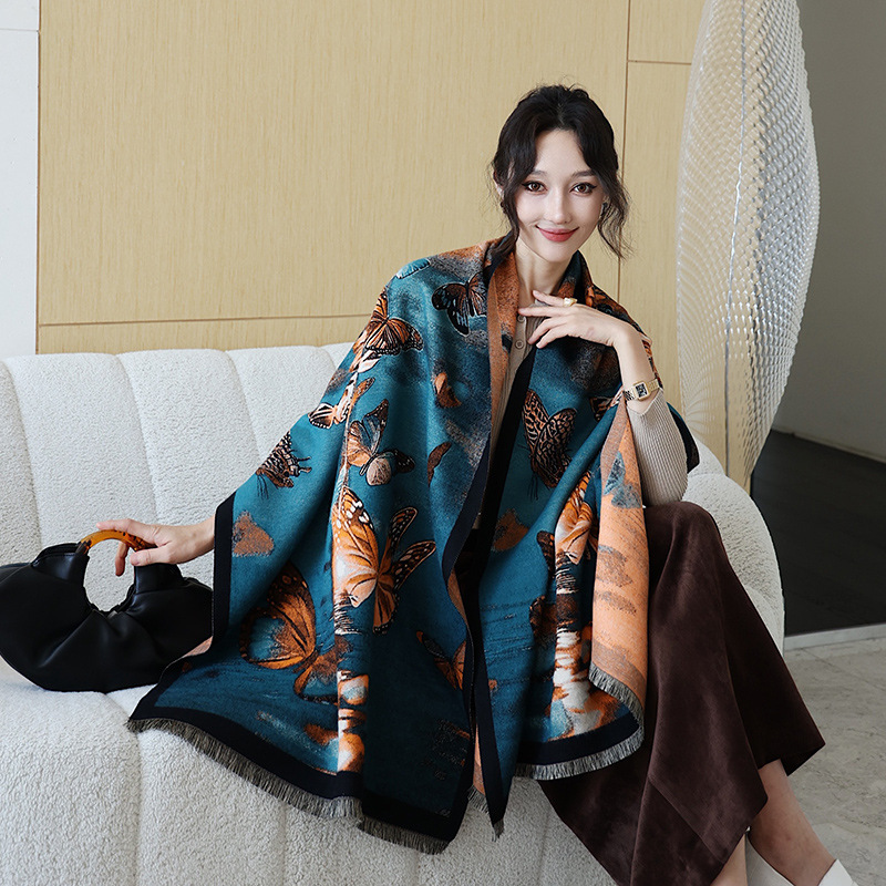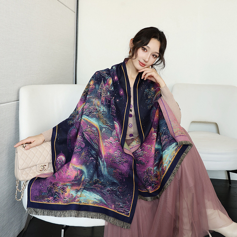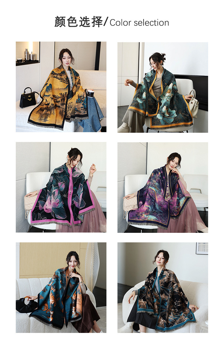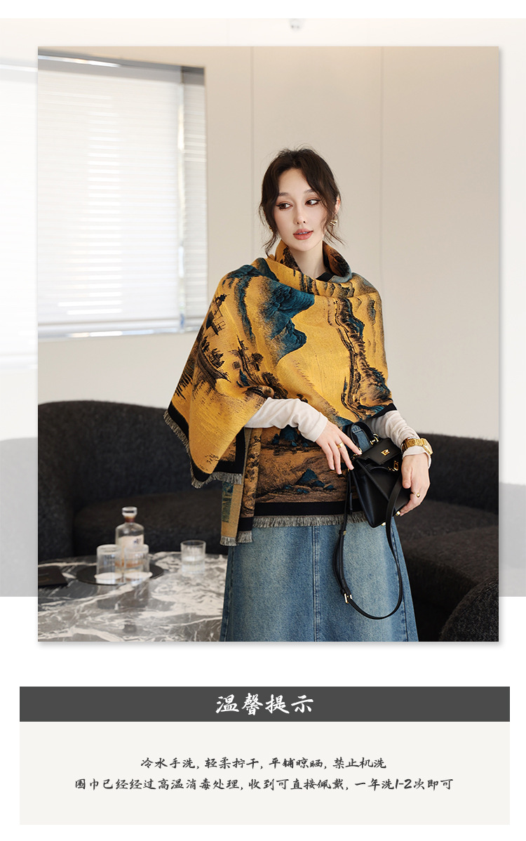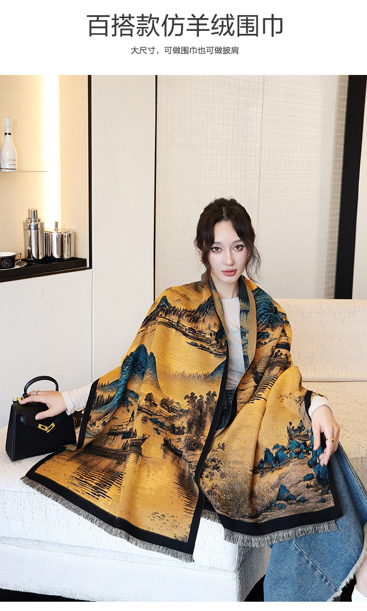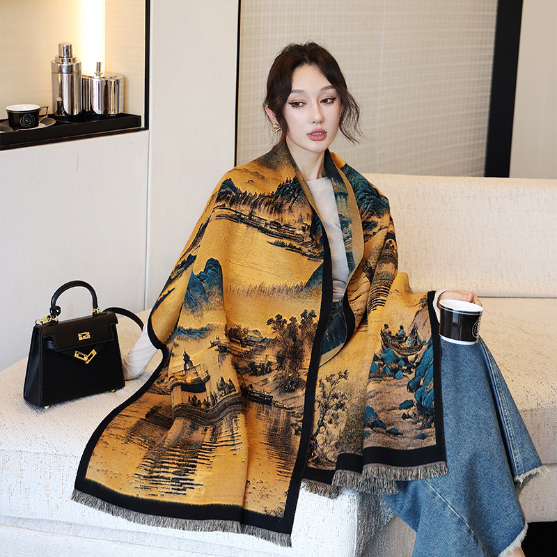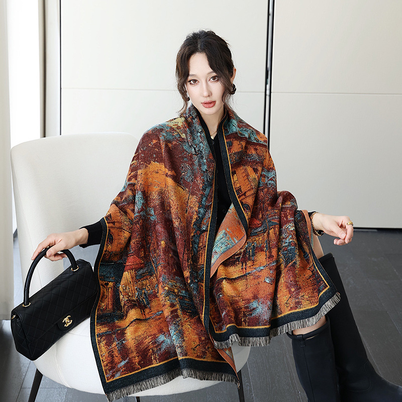 2024 가을 겨울 따뜻한 스카프 여성 이중 사용 사무실 목도리 스카프 패션 스카프 국가 스타일 유화 모조 캐시미어스토어 가기