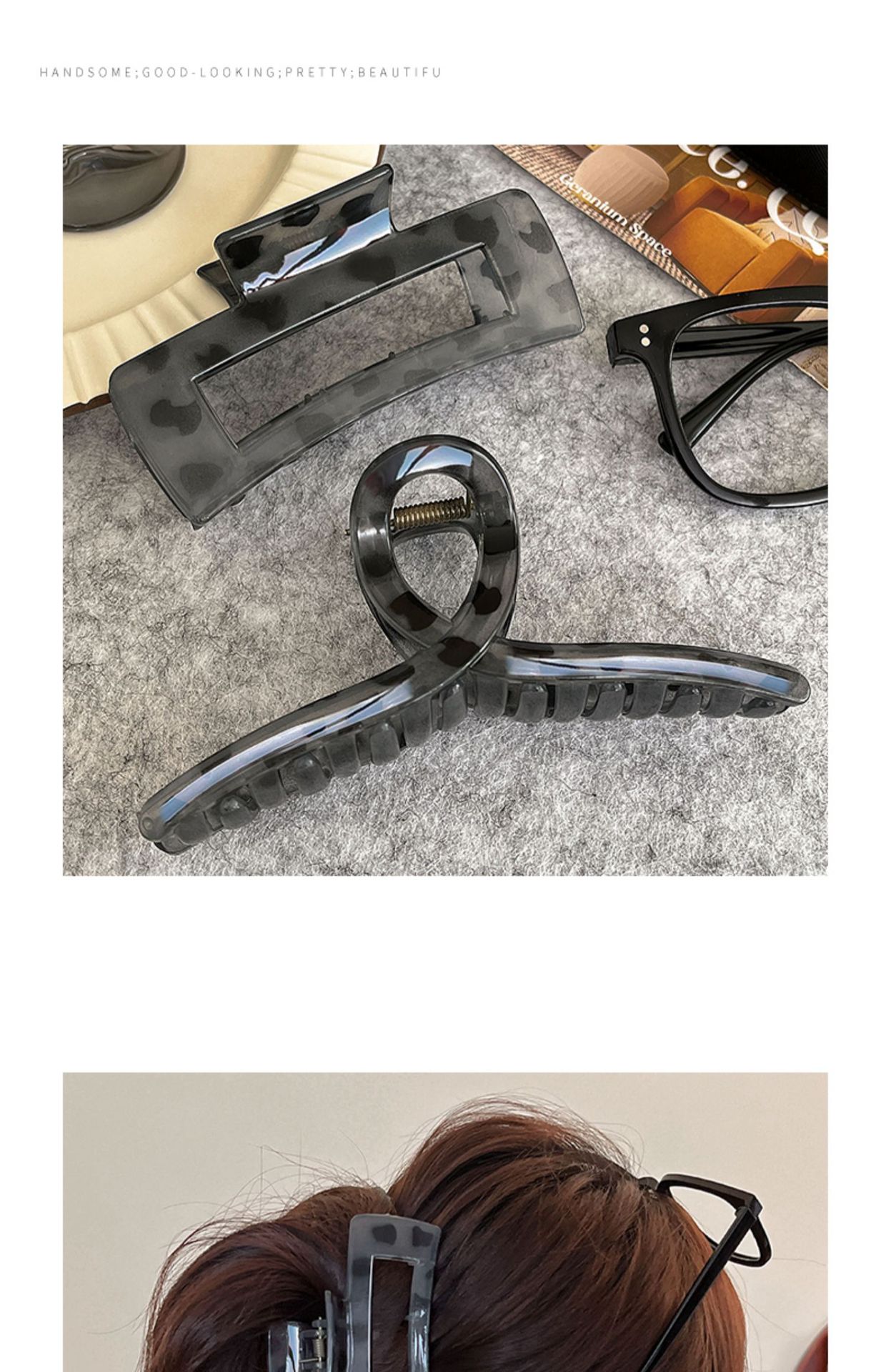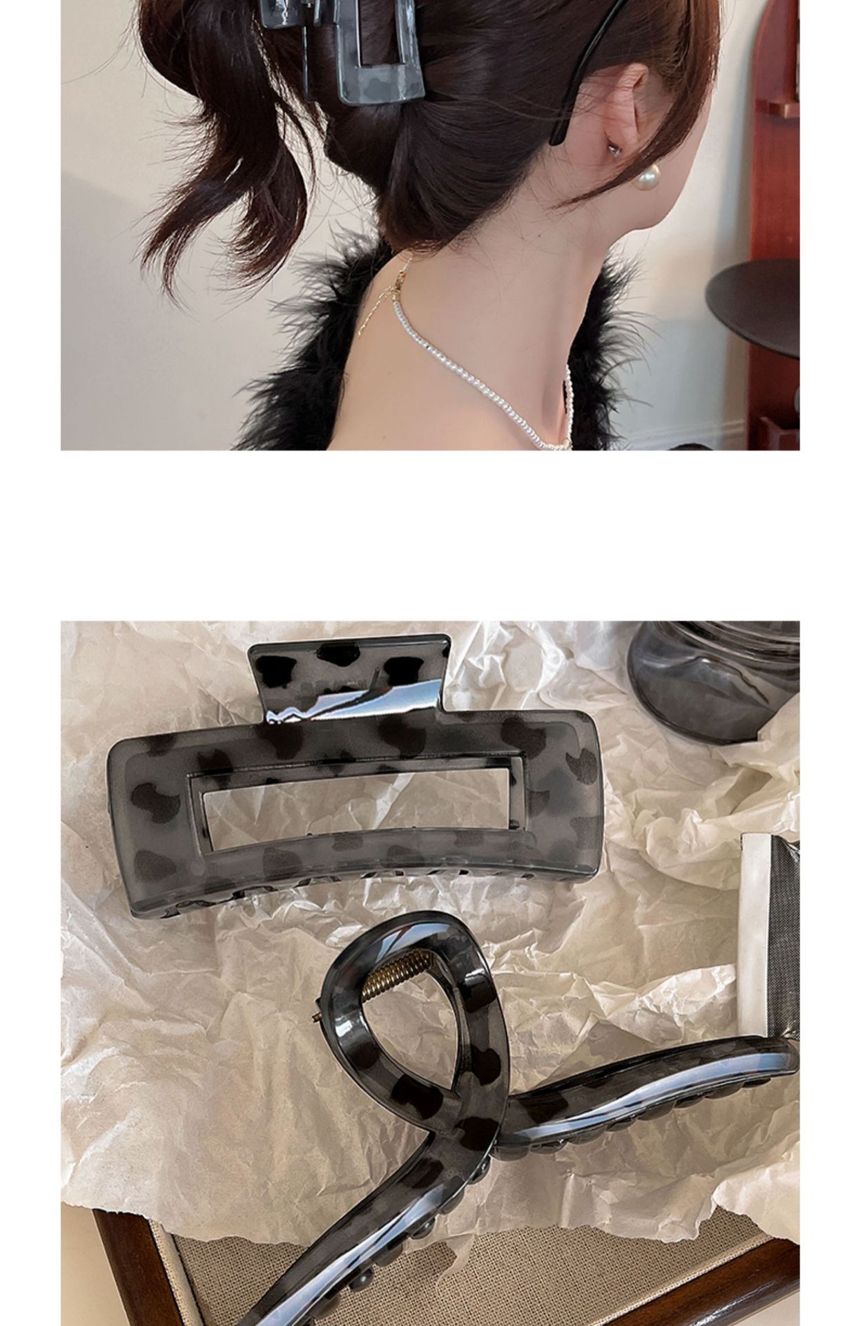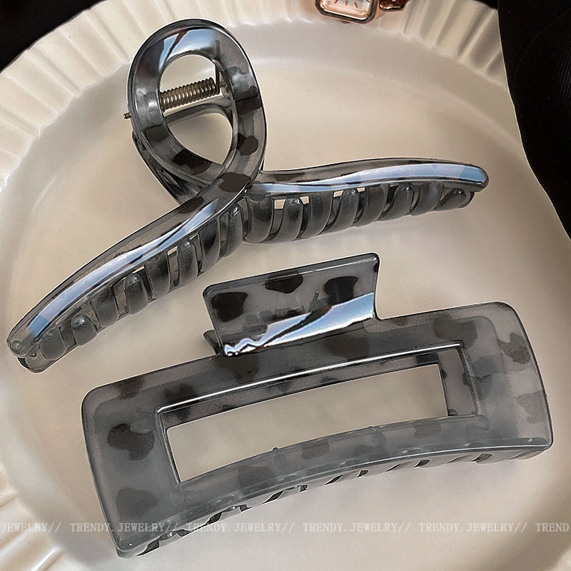 레오파드 무늬 그레이 대형 그랩 클립 여성용 하이 엔드 헤드 헤어 클립 2024 새로운 상어 클립 헤어 액세서리 헤어 클립스토어 가기