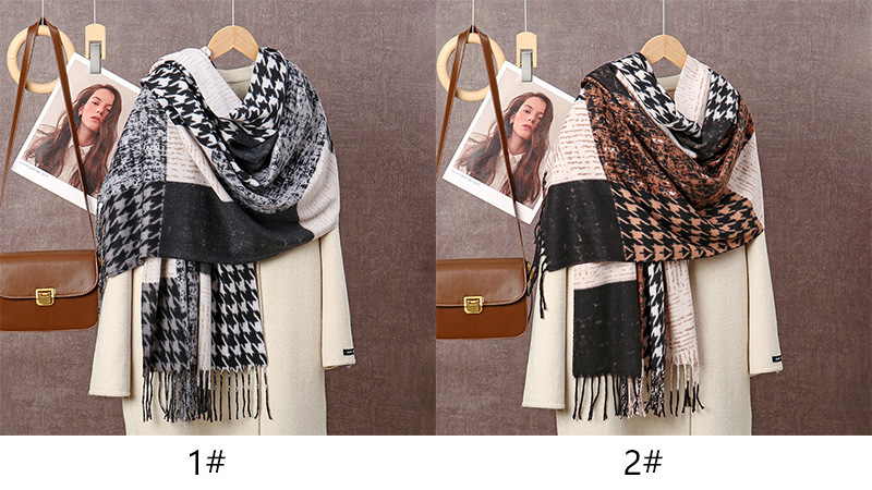 2024 년 새 한국 스타일 두꺼운 따뜻한 광장 기하학적 모방 캐시미어 스카프 가을과 겨울 여자 올 매치 듀얼 사용 목도리