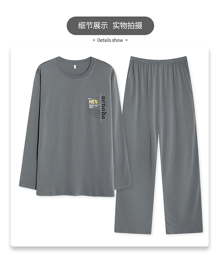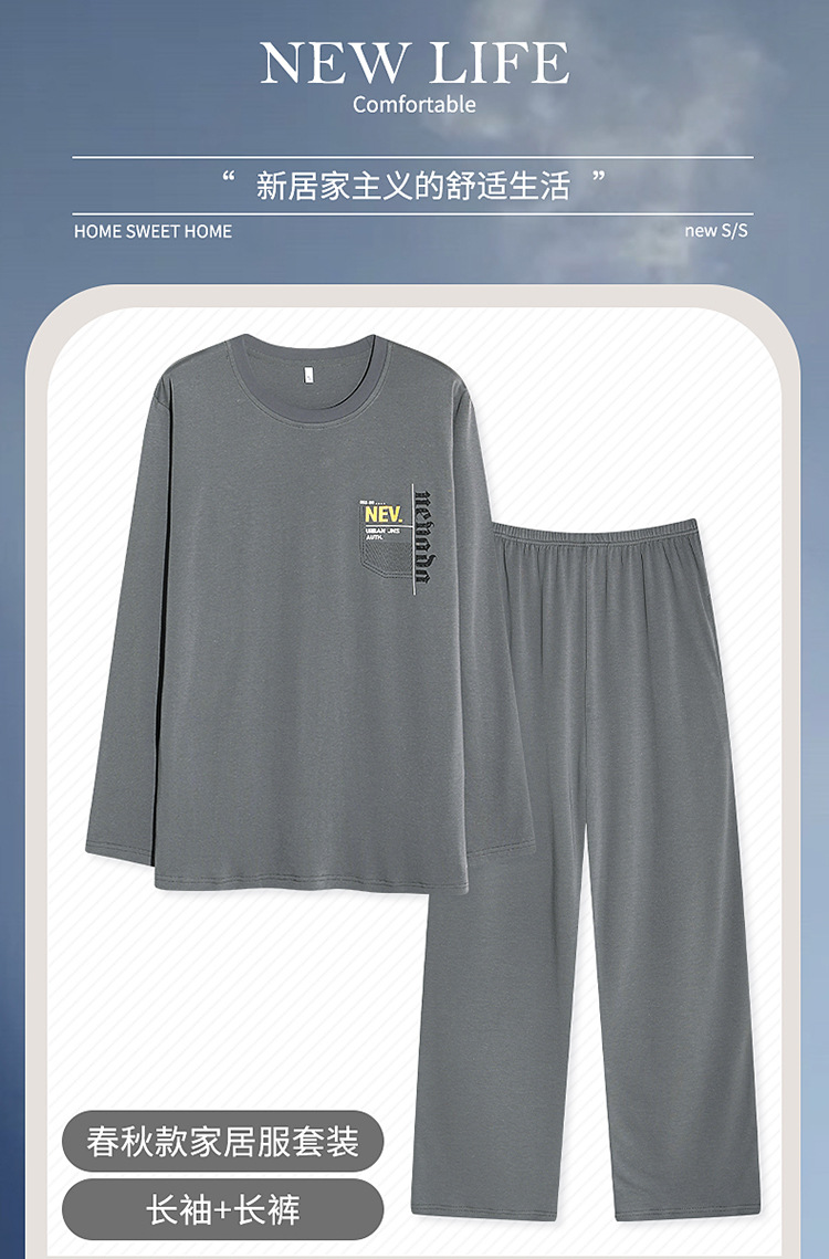 새로운 가을과 겨울 두꺼운 남자의 잠옷 모달 풀오버 느슨한 간단한 플러스 사이즈 긴팔 바지 홈 투피스 세트스토어 가기