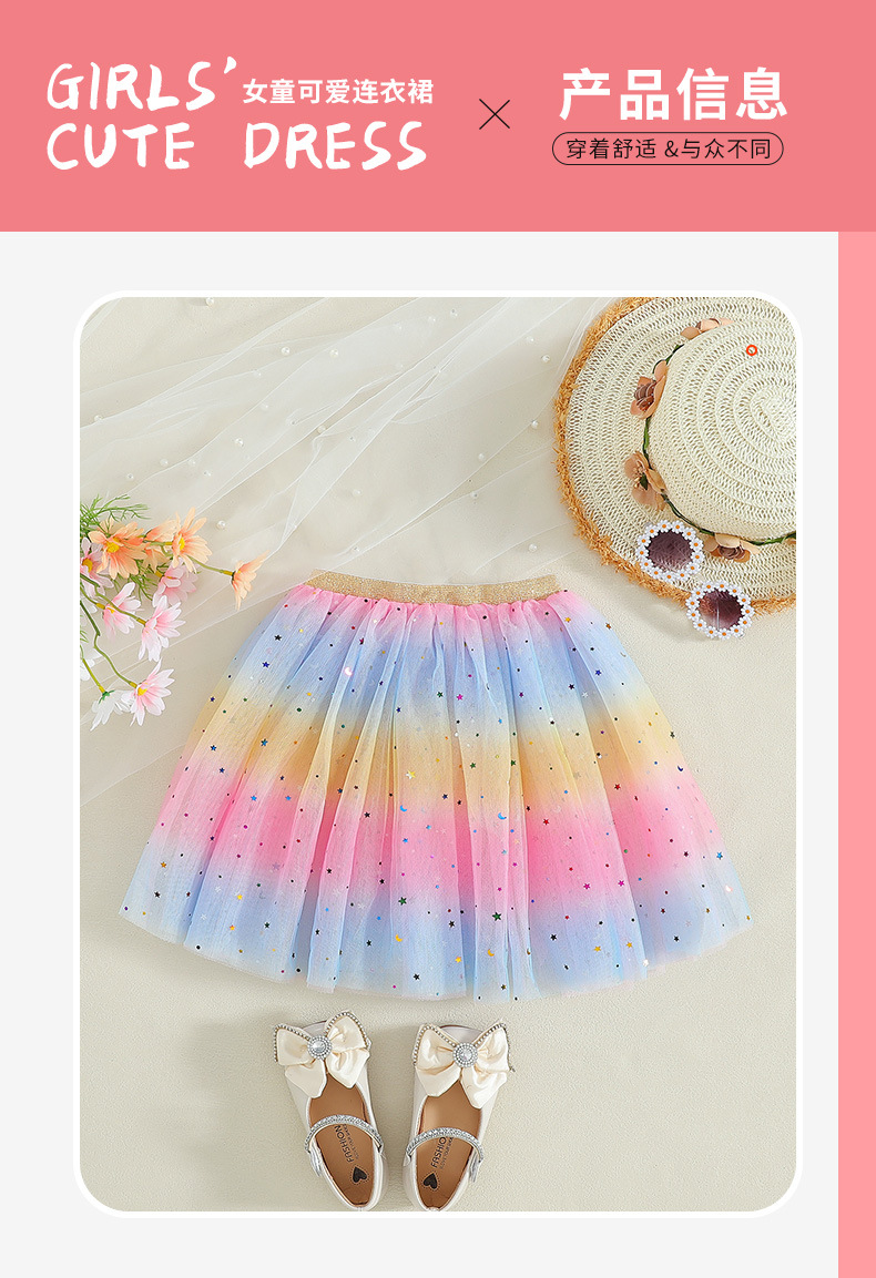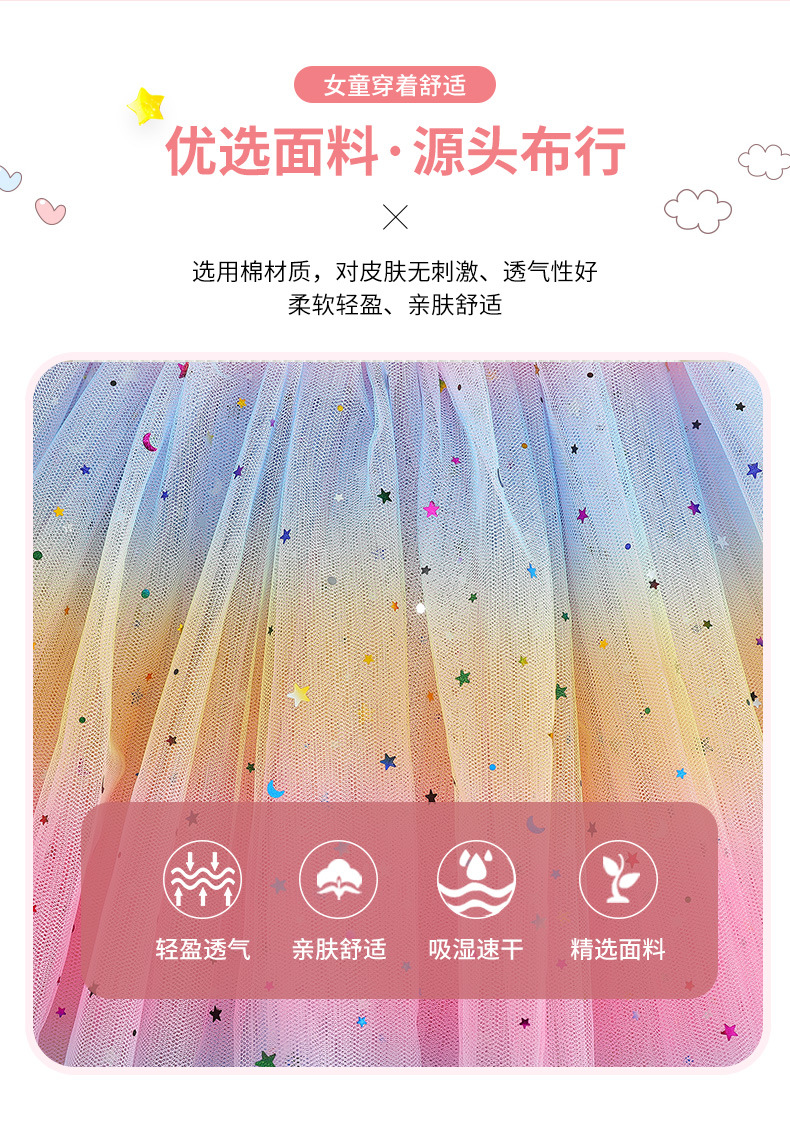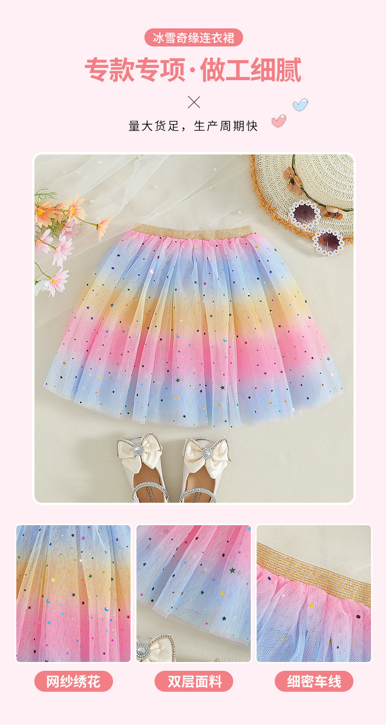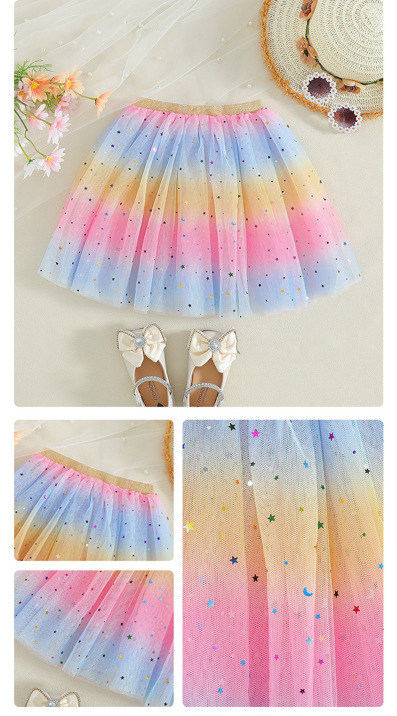 어린이 치마 레인보우 Sequin 스커트 성능 스커트 2025 새로운 스타일 메쉬 퍼프 스커트 댄스 스커트 베이비 프린세스스토어 가기