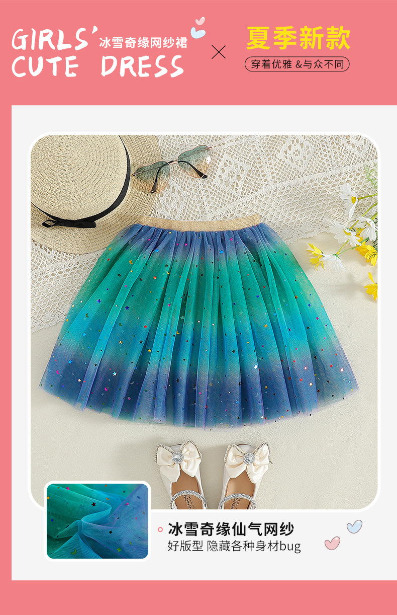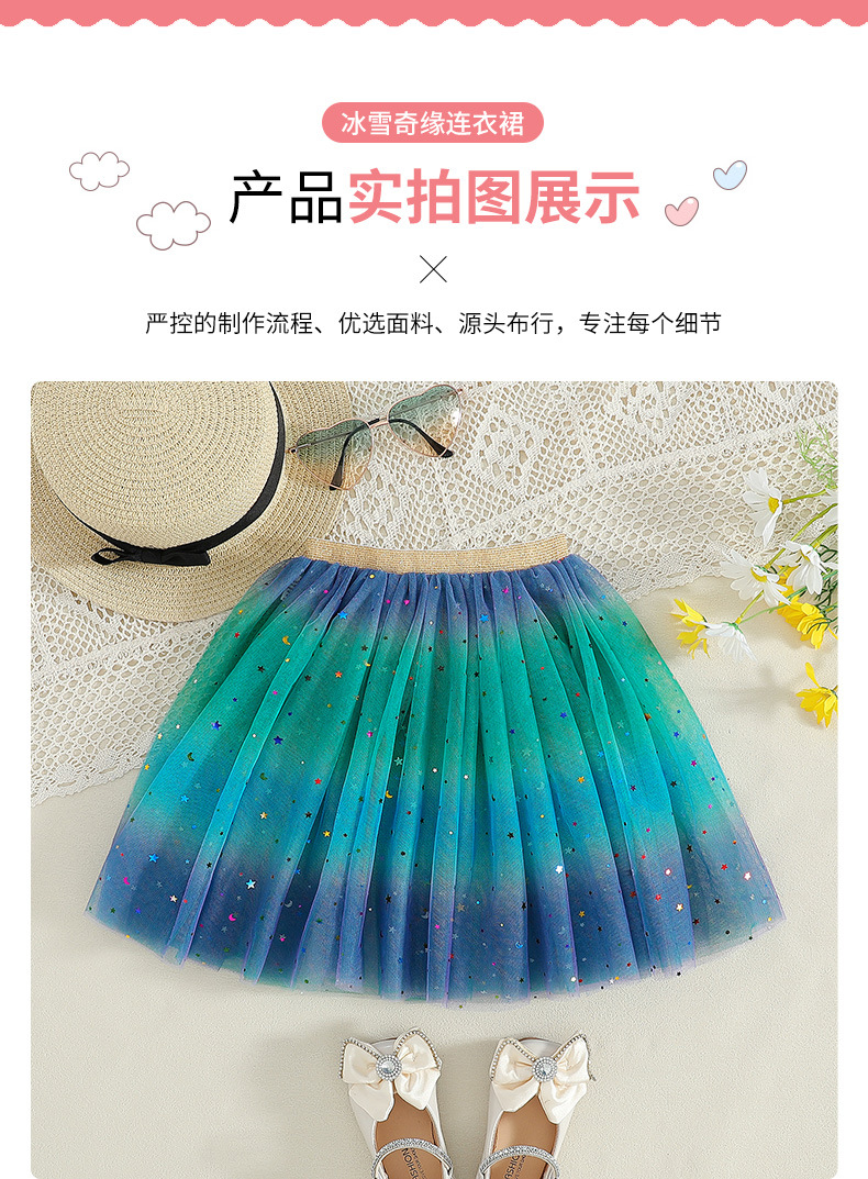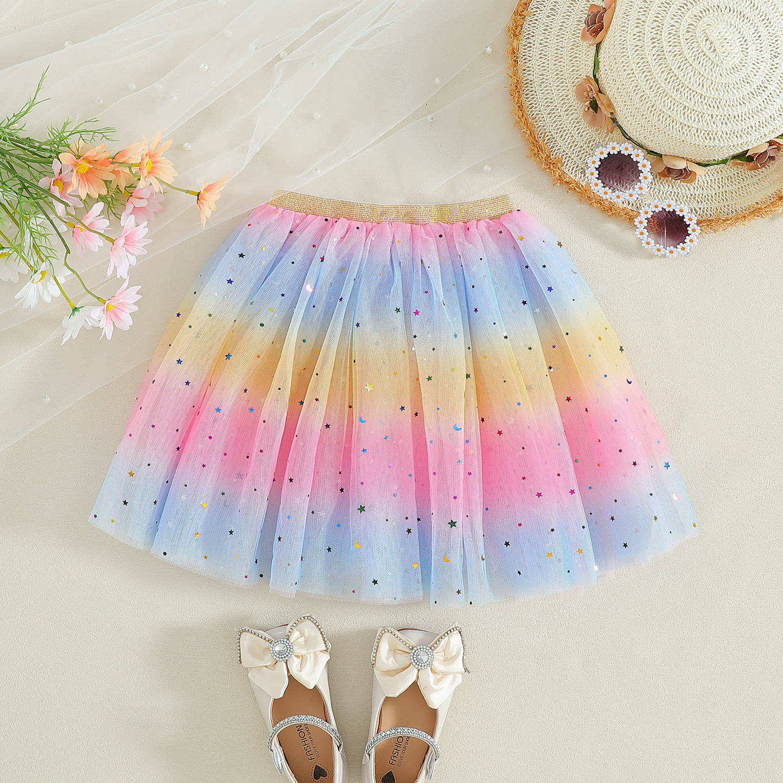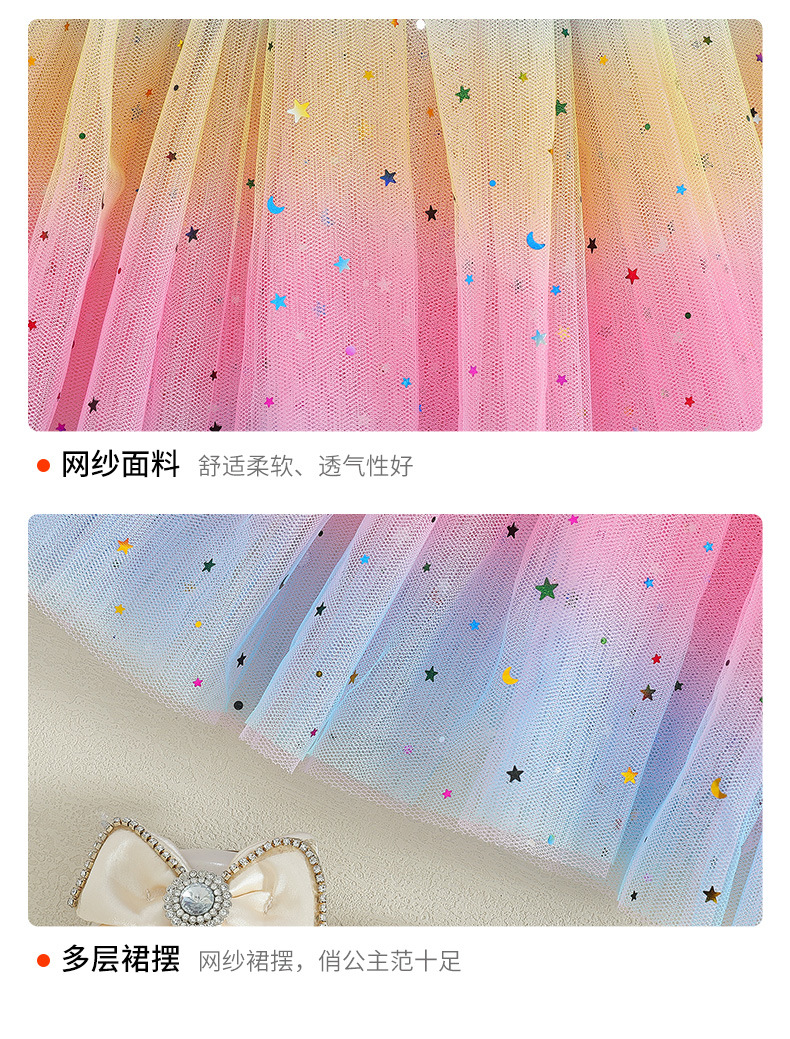 어린이 치마 레인보우 Sequin 스커트 성능 스커트 2025 새로운 스타일 메쉬 퍼프 스커트 댄스 스커트 베이비 프린세스스토어 가기