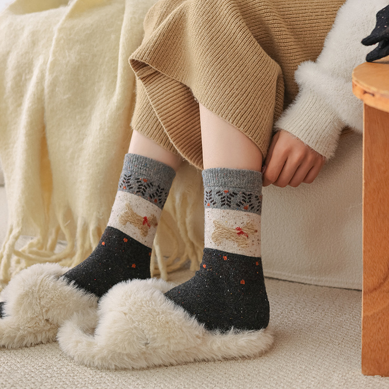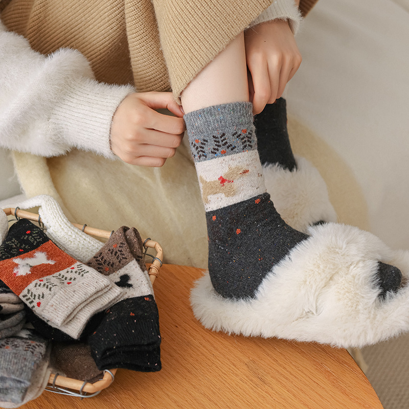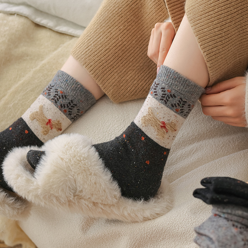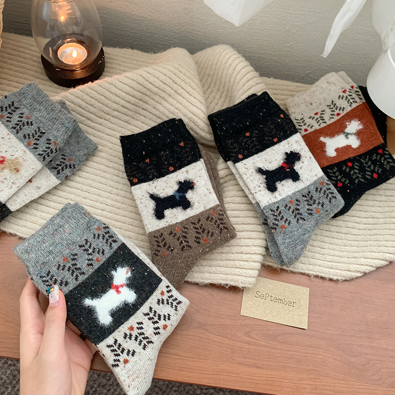 따뜻한 봉제 귀여운 강아지 겨울 스타킹 기모 두꺼운 빈티지 양모 양말 어린이 중추와 겨울