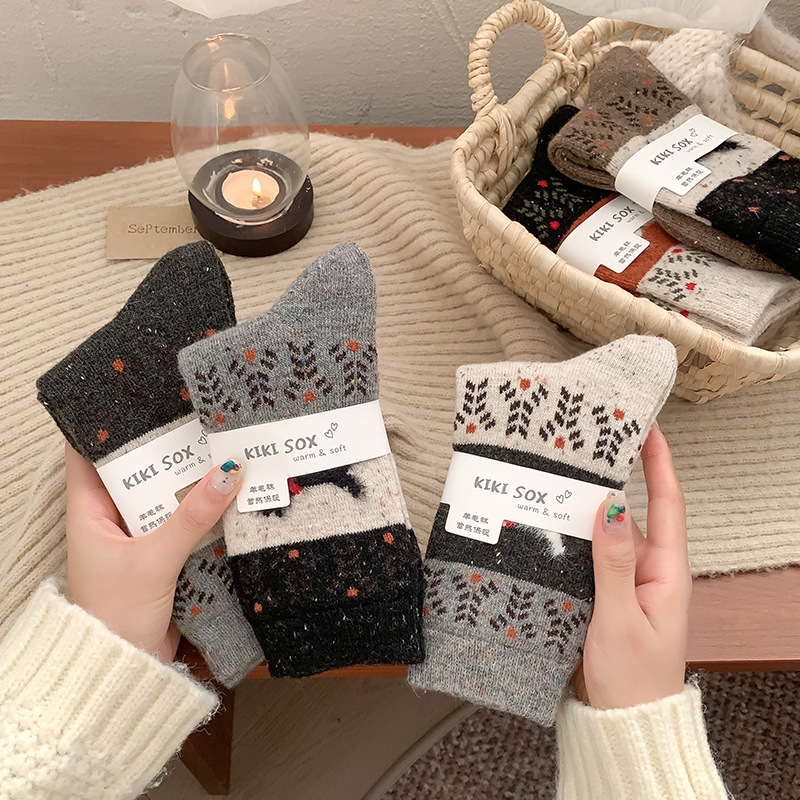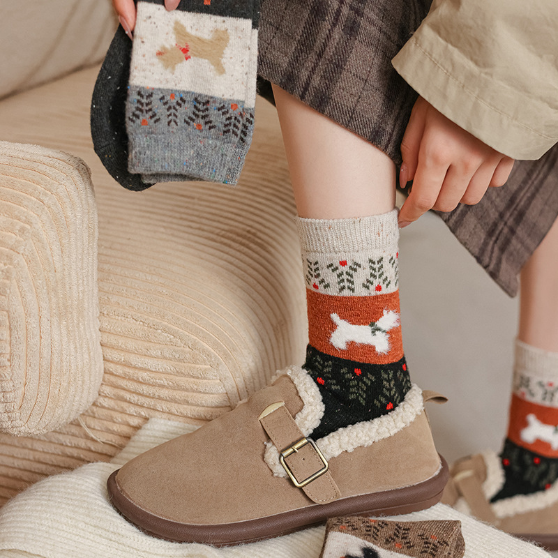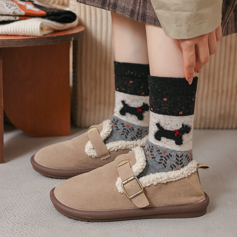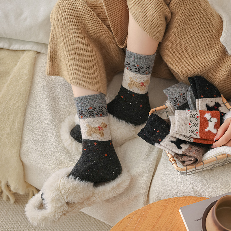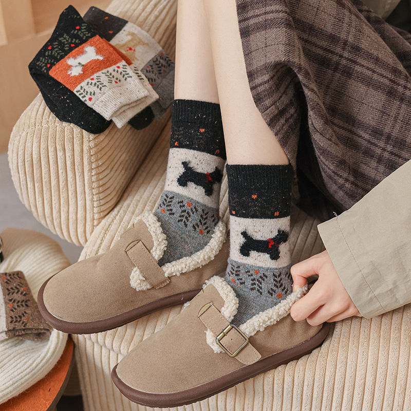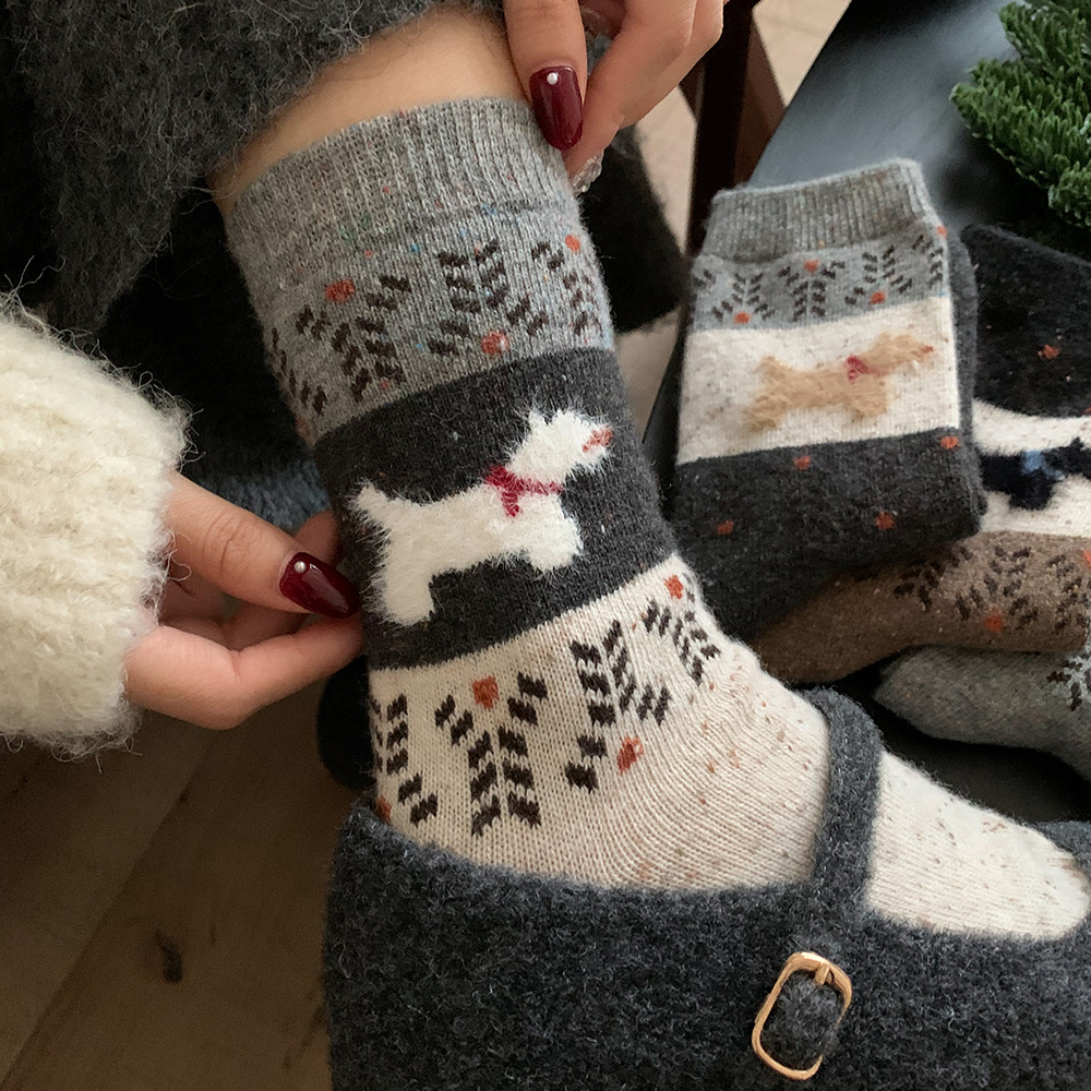 따뜻한 봉제 귀여운 강아지 겨울 스타킹 기모 두꺼운 빈티지 양모 양말 어린이 중추와 겨울스토어 가기