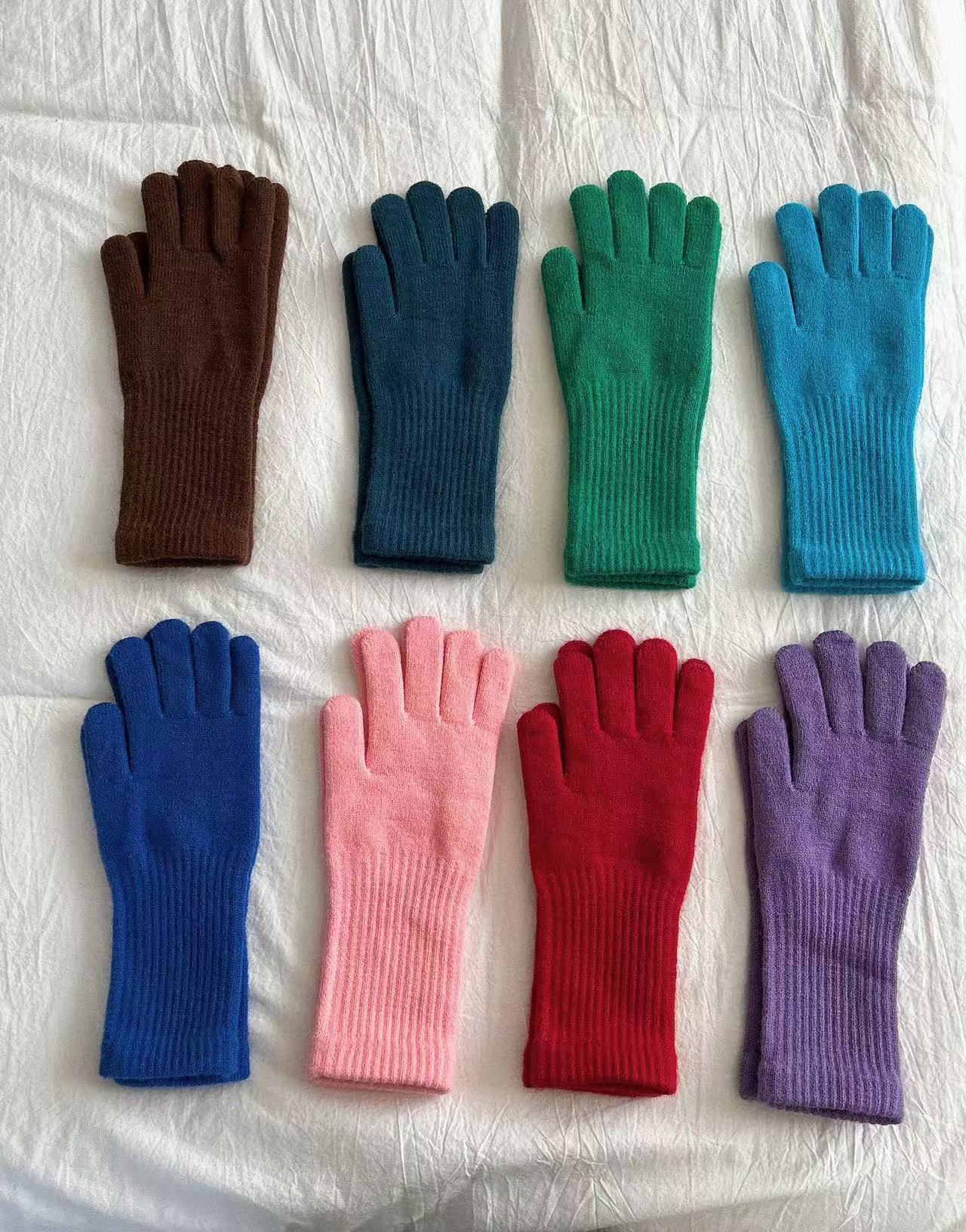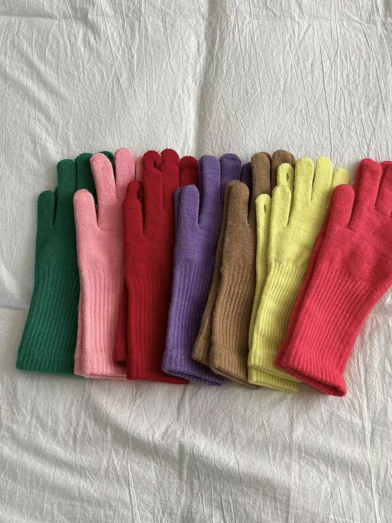단색 다목적 니트 긴 터치 스크린 손가락 누설 장갑 남성과 여성 학생을위한 가을과 겨울 따뜻한 양모 사이클링 장갑스토어 가기