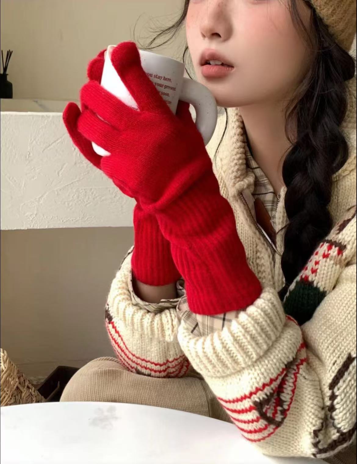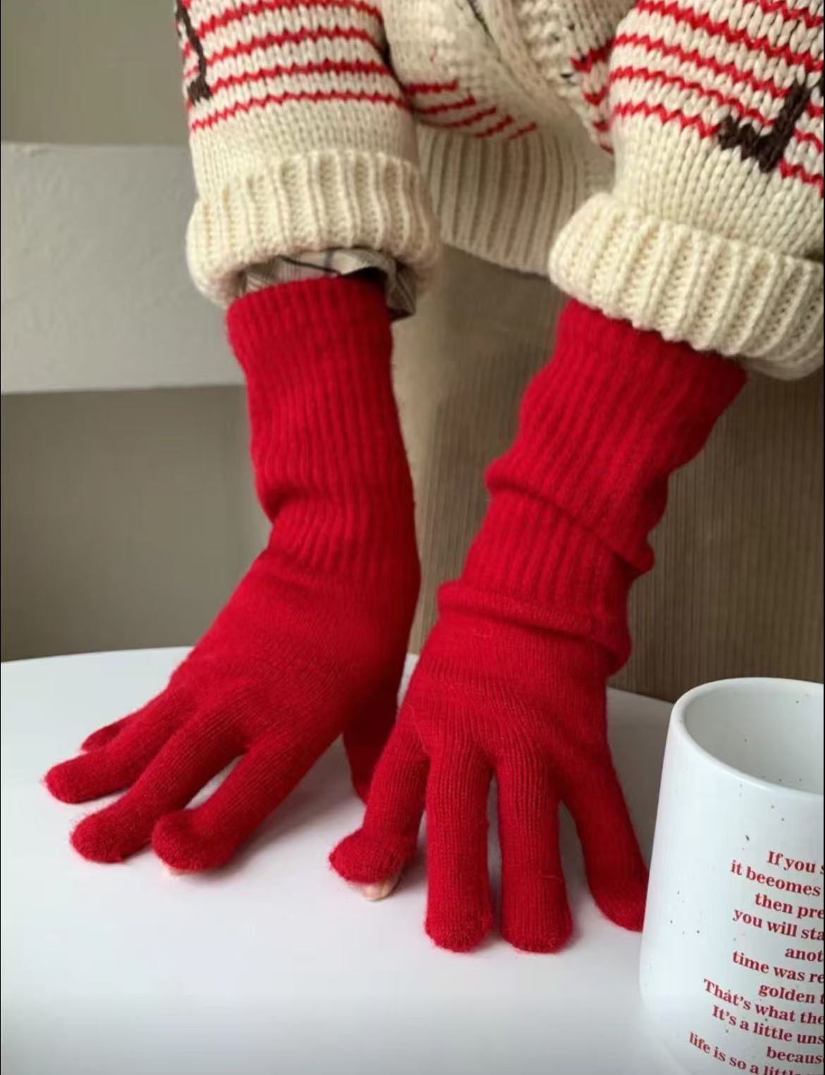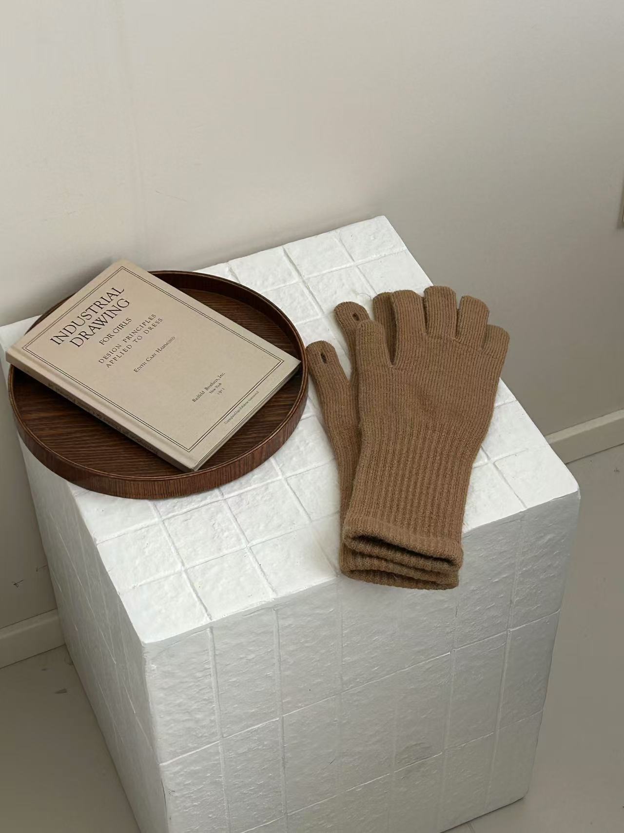 단색 다목적 니트 긴 터치 스크린 손가락 누설 장갑 남성과 여성 학생을위한 가을과 겨울 따뜻한 양모 사이클링 장갑