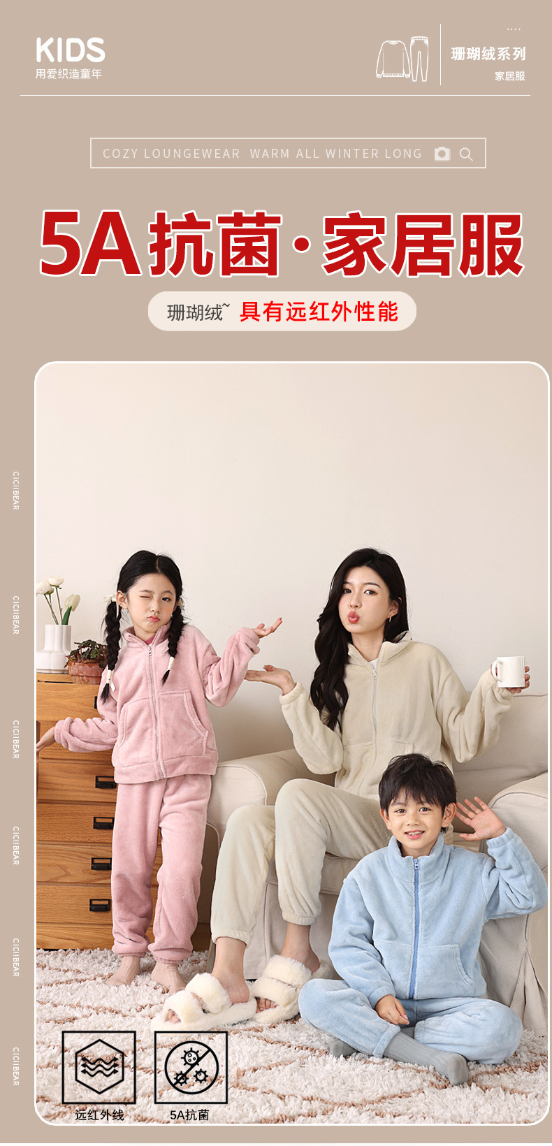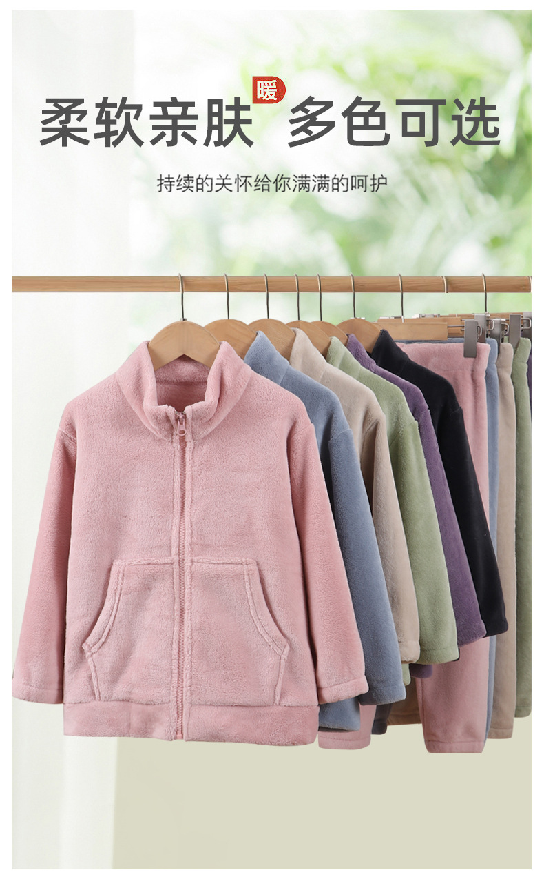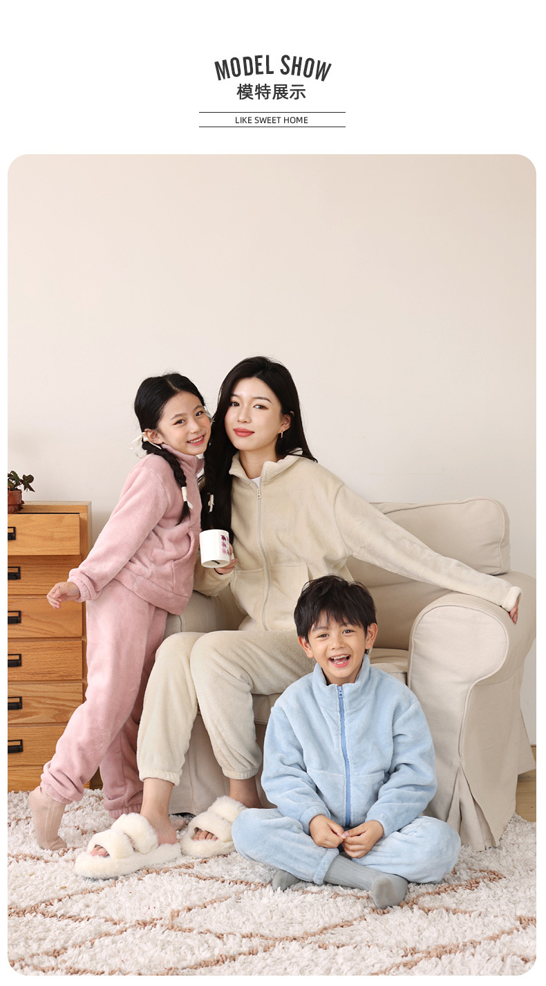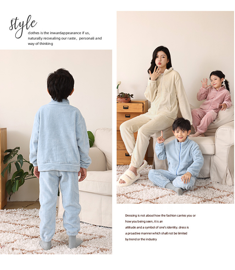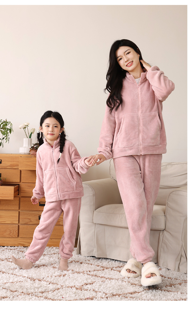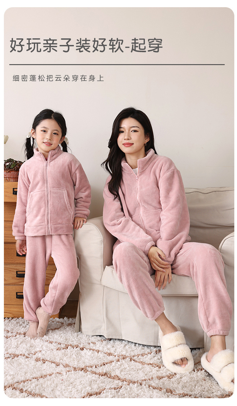어린이 산호 양털 잠옷 세트 가을과 겨울 기모 두꺼운 부모-자식 집 옷 플란넬 자켓 따뜻한 옷 어린이스토어 가기
