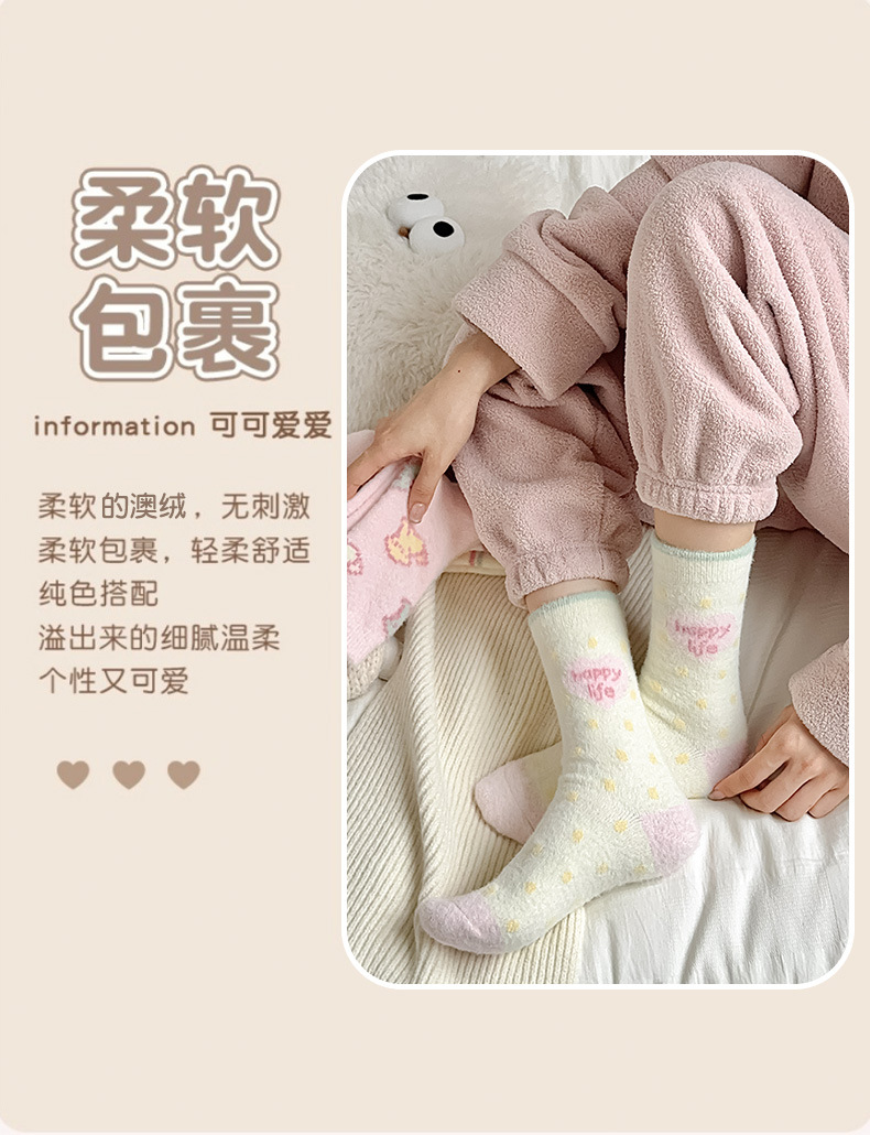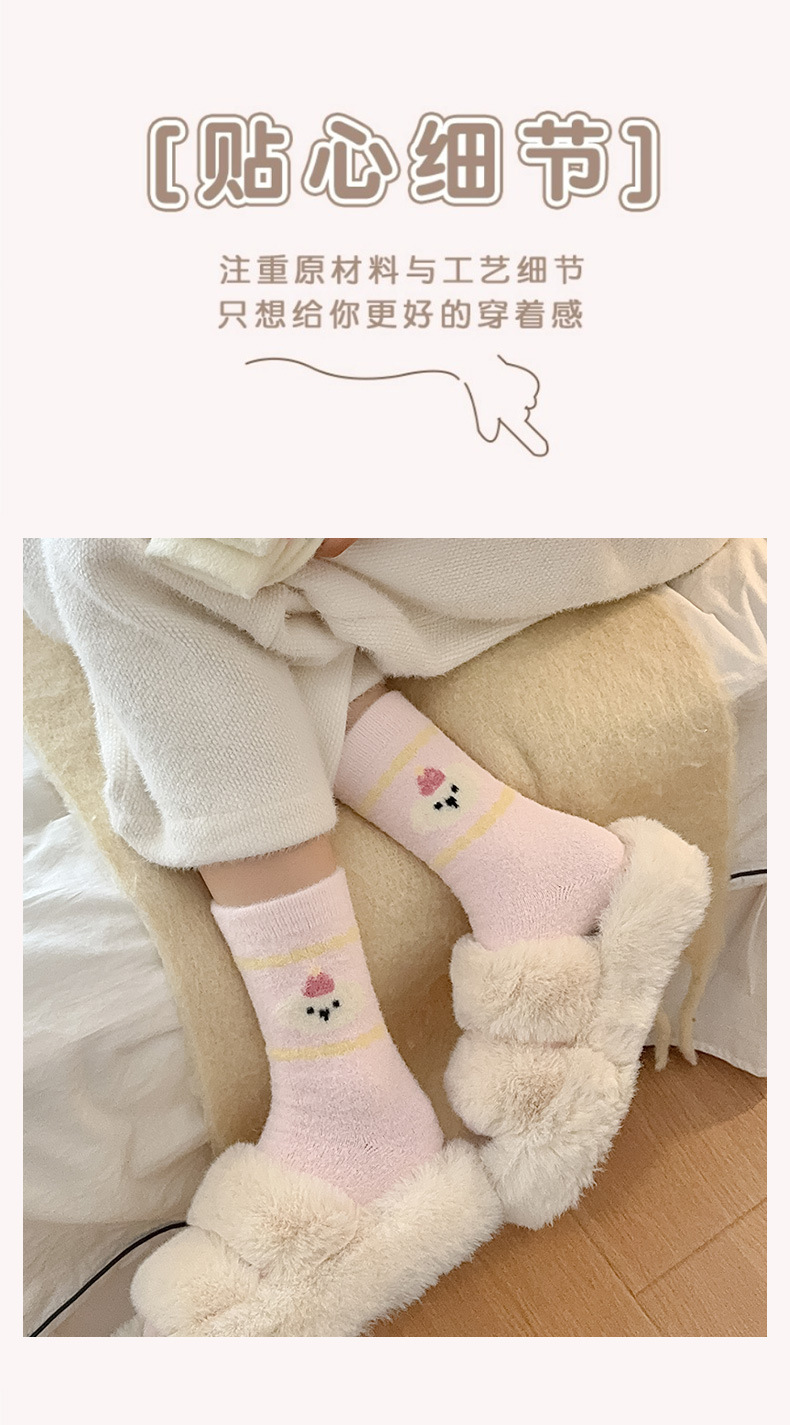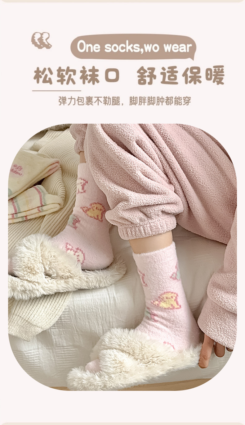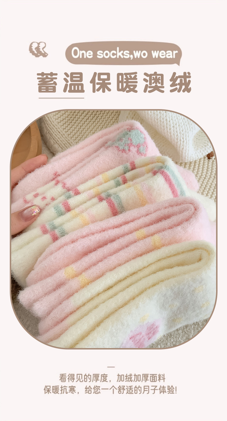 달콤한 핑크 봉제 양말 여성의 겨울 두꺼운 따뜻한 호주 벨벳 미드 튜브 양말 높은 허리 홈 잠자는 달 양말스토어 가기