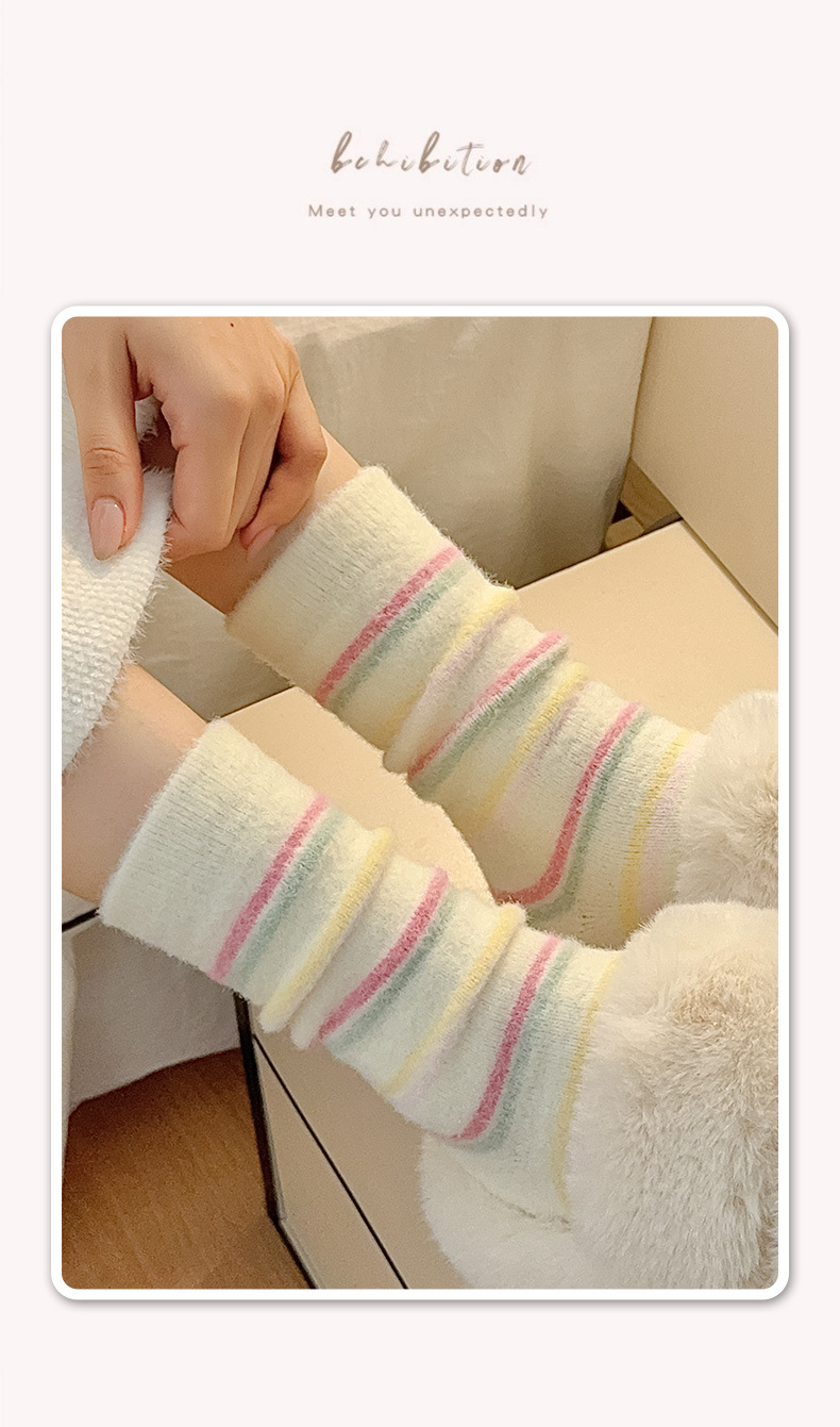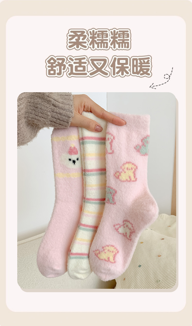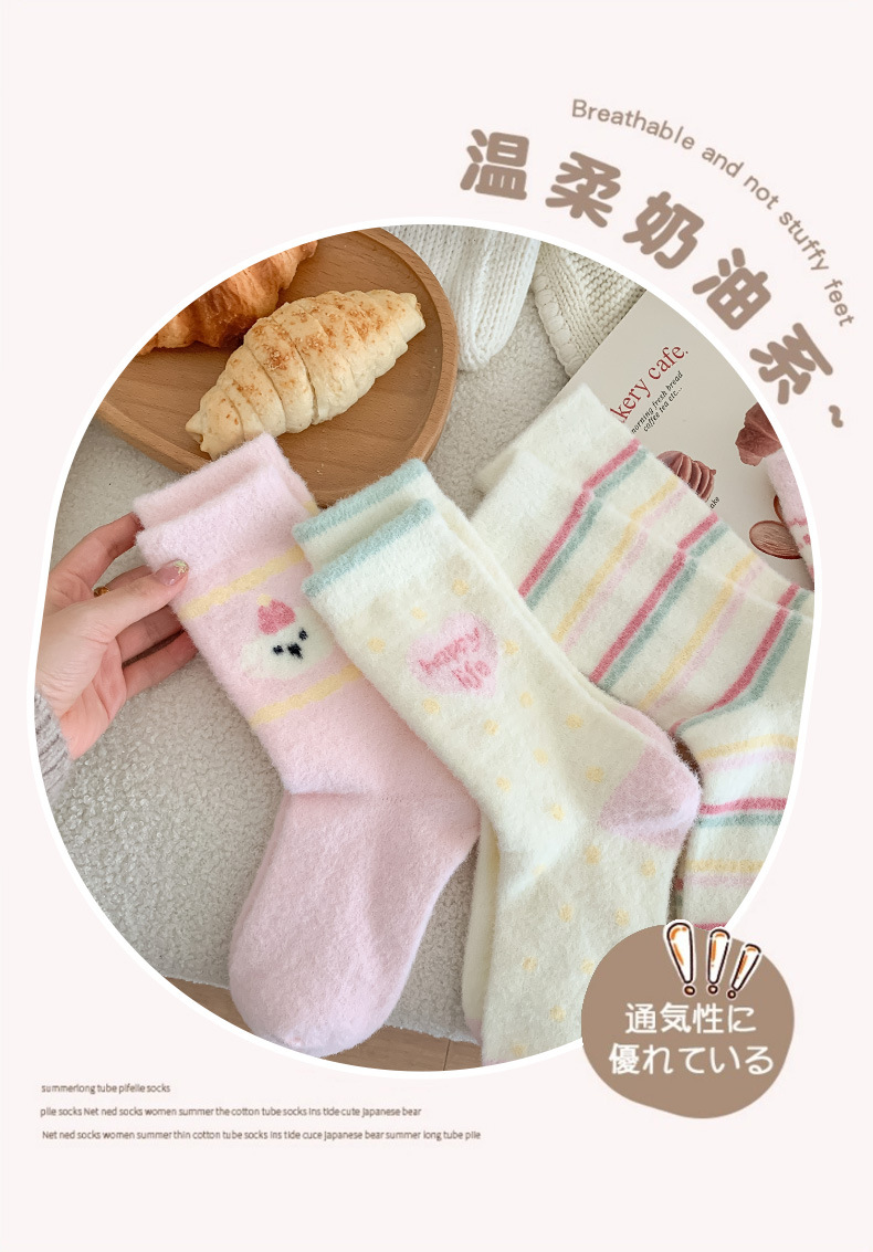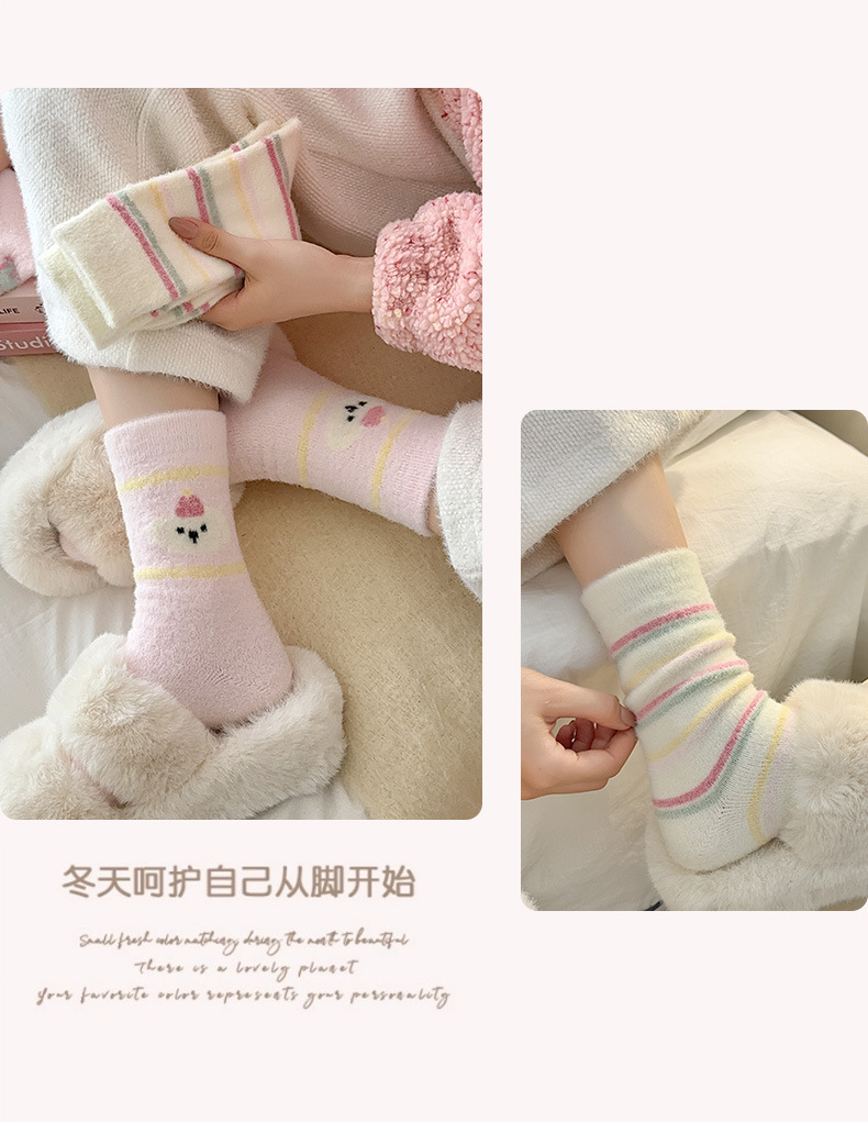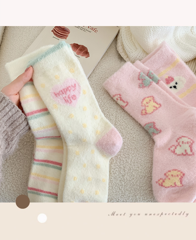 달콤한 핑크 봉제 양말 여성의 겨울 두꺼운 따뜻한 호주 벨벳 미드 튜브 양말 높은 허리 홈 잠자는 달 양말스토어 가기