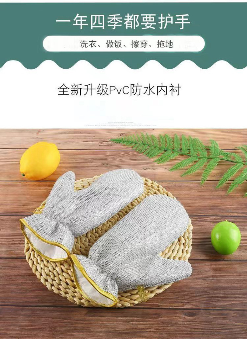 실버 식기 세척 장갑 기름없는 주방 가정용 청소 기름 방지 방수 대나무 섬유 장갑 단일 식기 세척 아티팩트