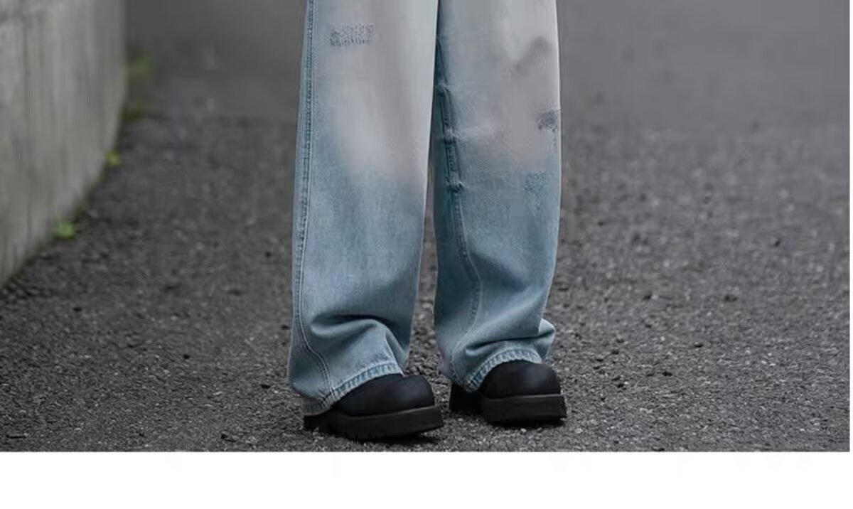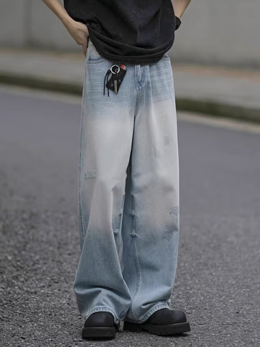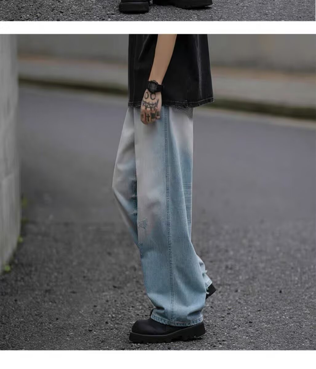 씻은 오래된 청바지 남자의 가을 미국 스타일 복고풍 느슨한 넓은 다리 스트레이트 바지