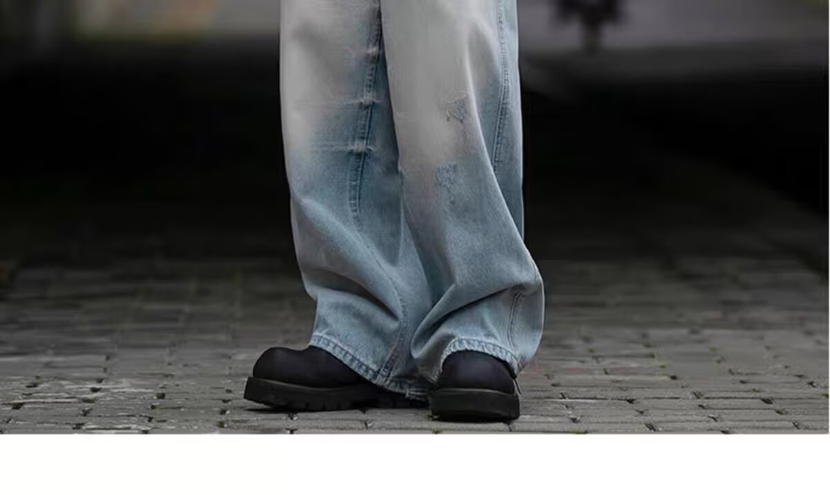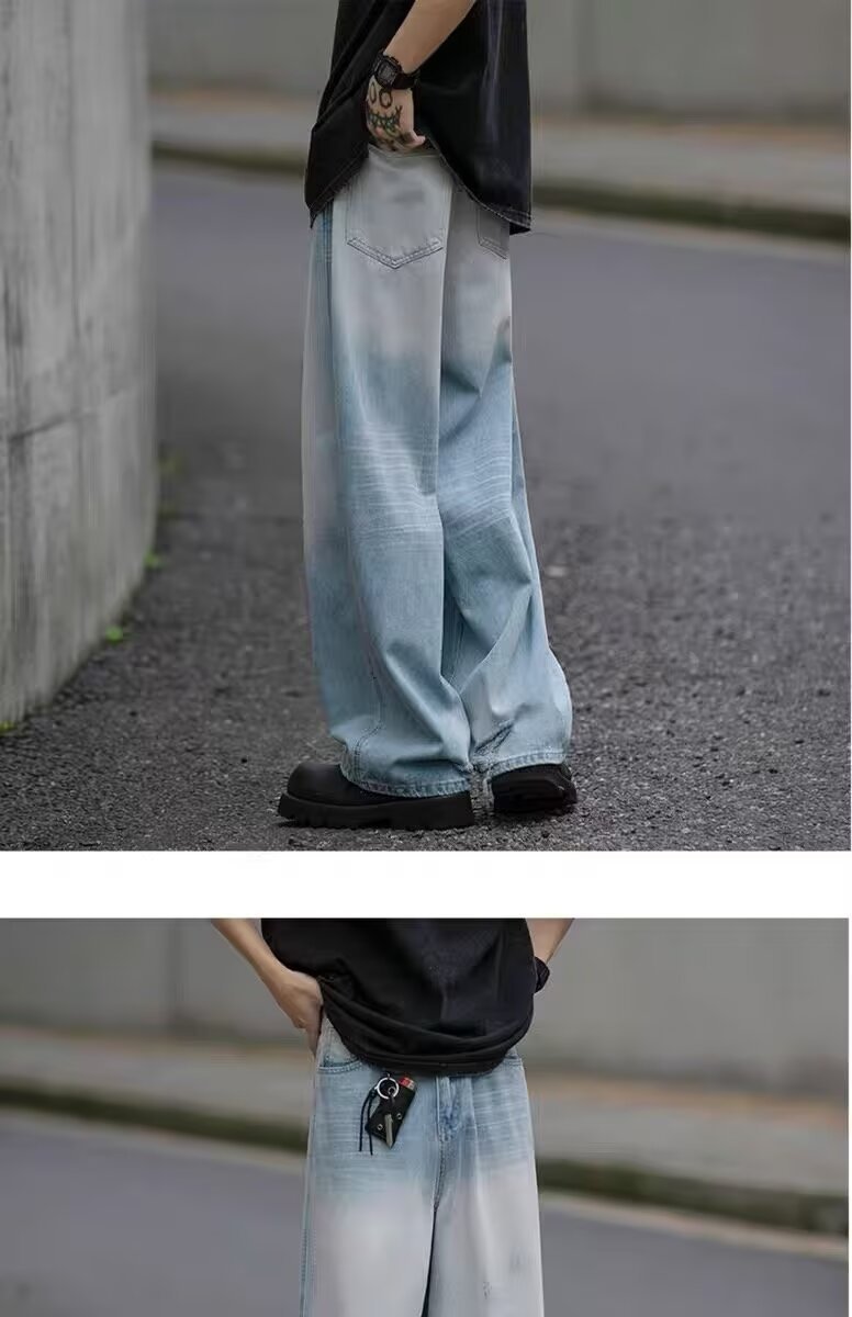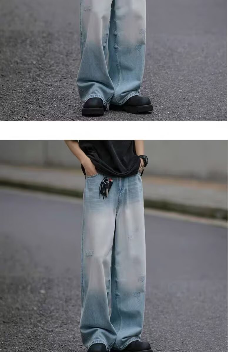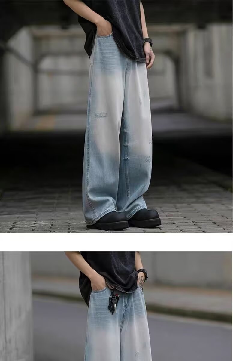 씻은 오래된 청바지 남자의 가을 미국 스타일 복고풍 느슨한 넓은 다리 스트레이트 바지스토어 가기