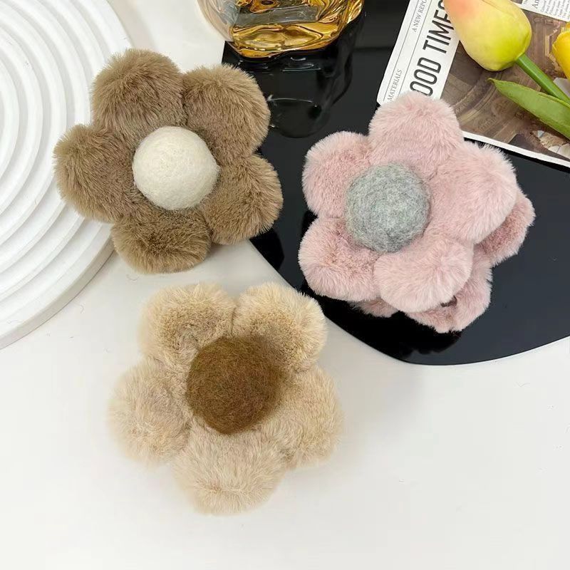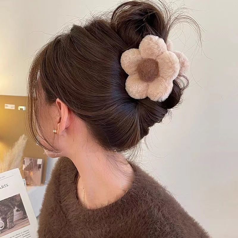 꽃 봉제 머리핀 여성용 머리 클립 2024 새로운 귀여운 가을과 겨울 상어 클립 고급 헤어 액세서리스토어 가기