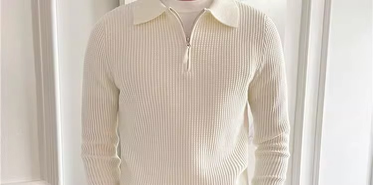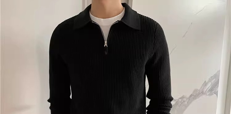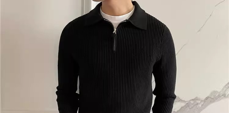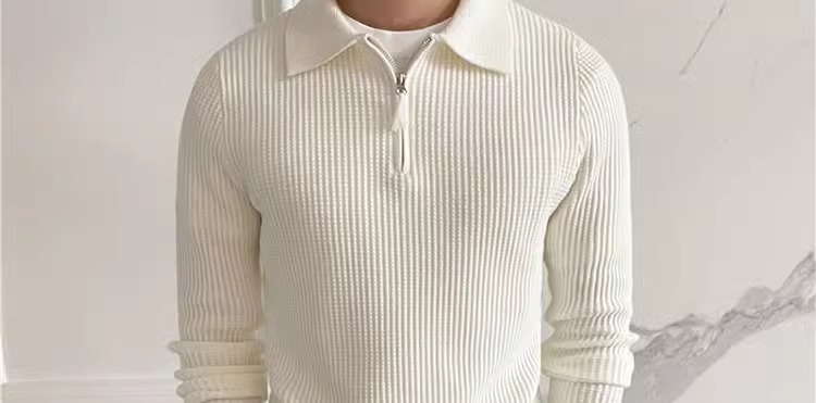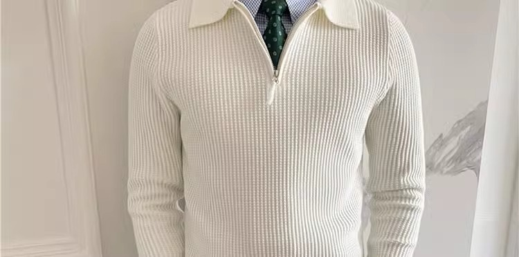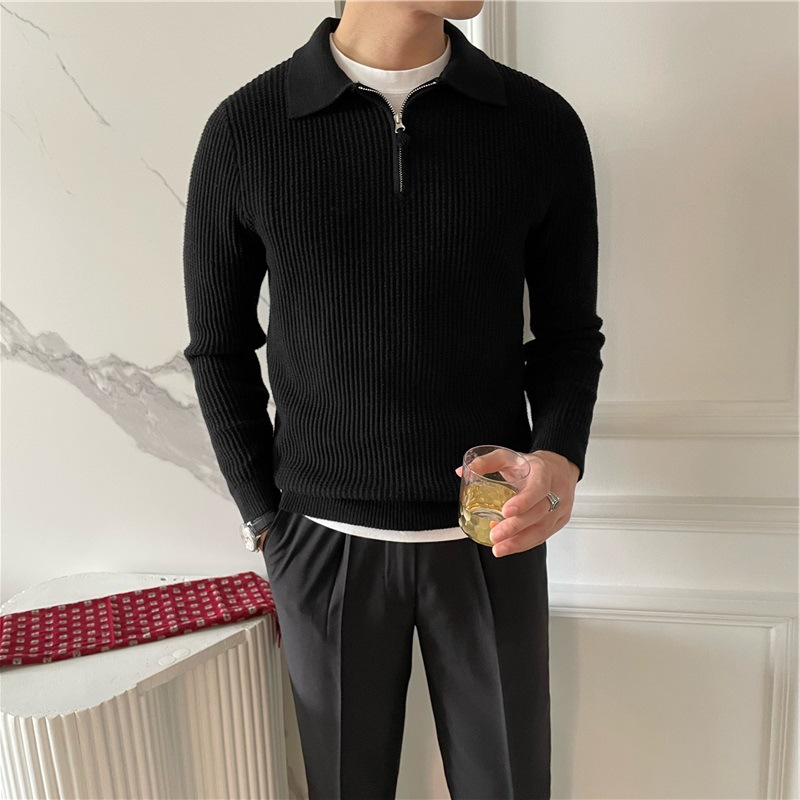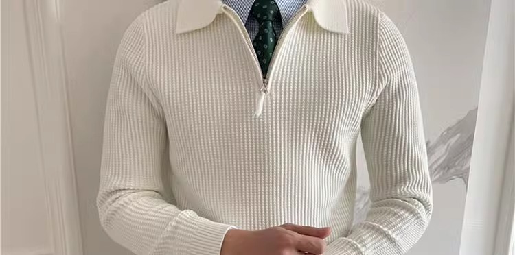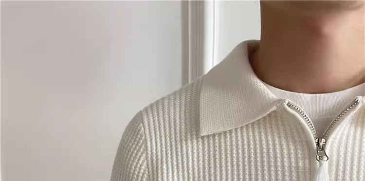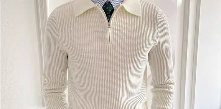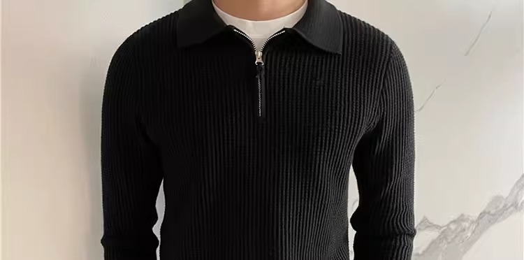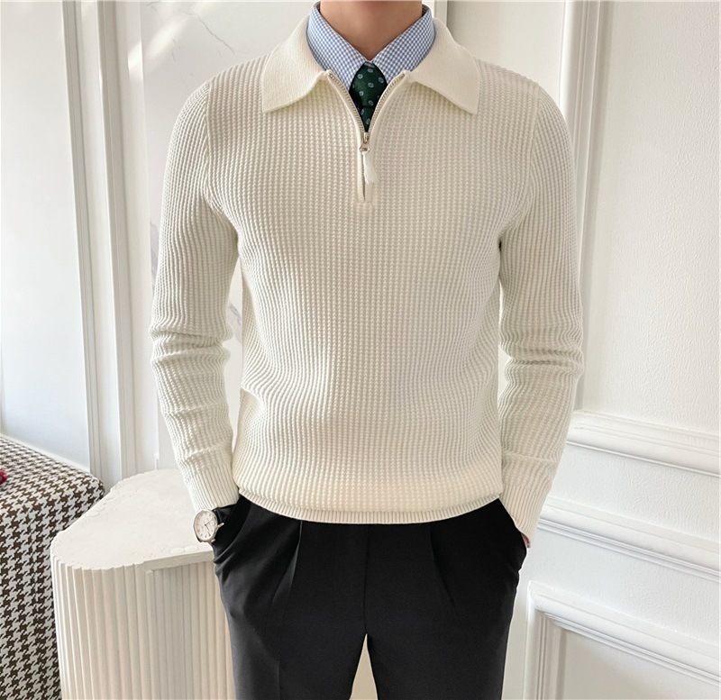 영국 남자 긴팔 반 지프 폴로 옷깃 스웨터 풀오버 와플 패브릭 슬림 핏 솔리드 컬러 울 탑