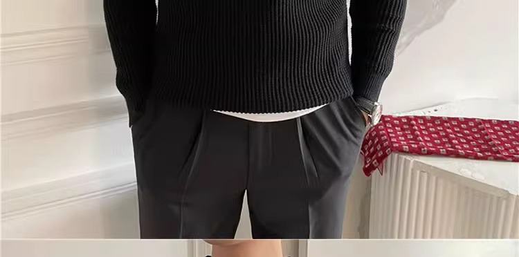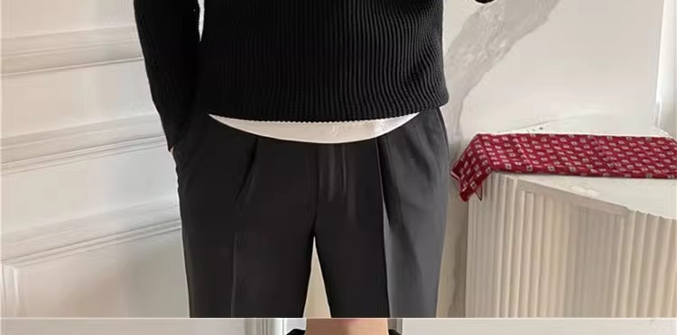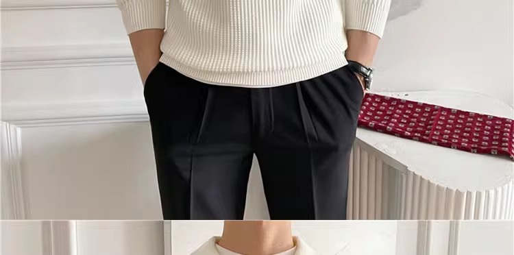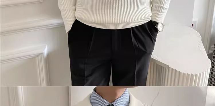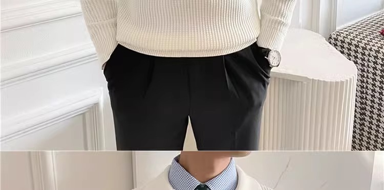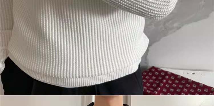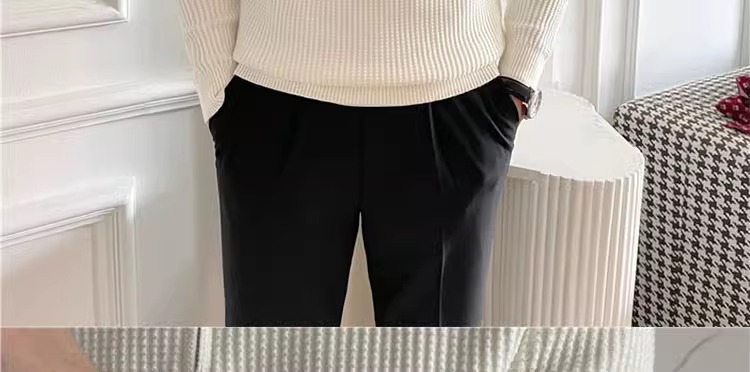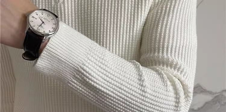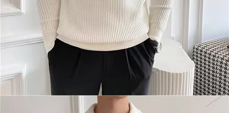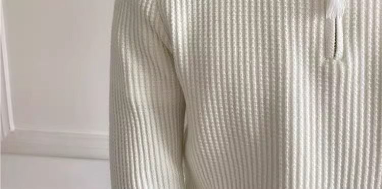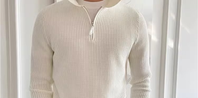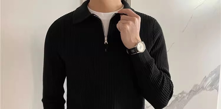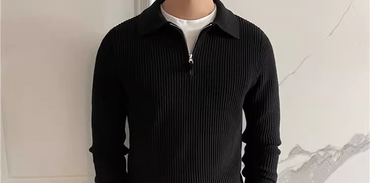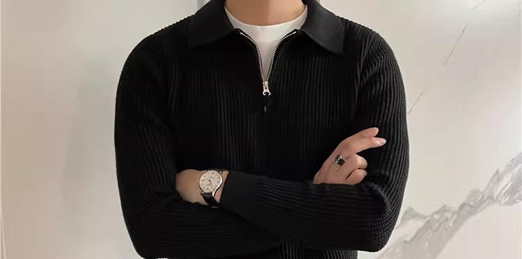 영국 남자 긴팔 반 지프 폴로 옷깃 스웨터 풀오버 와플 패브릭 슬림 핏 솔리드 컬러 울 탑