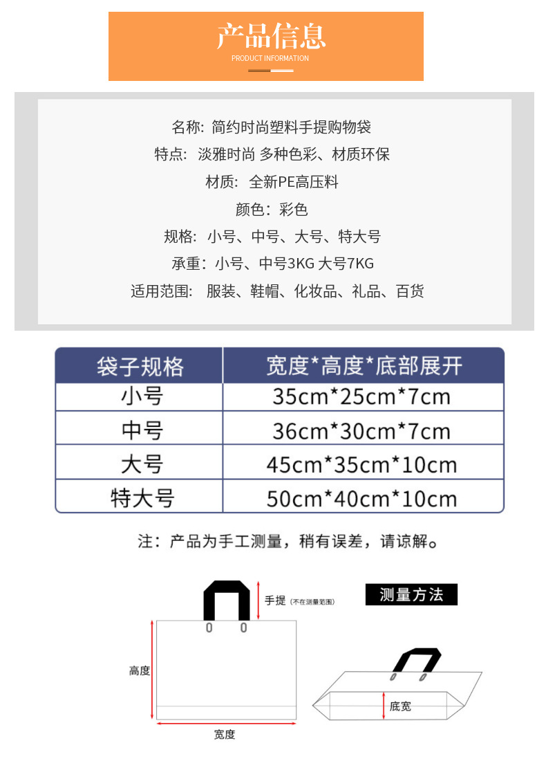 플라스틱 핸드백 선물 가방 신발 상자 비닐봉투 다색 의류점 쇼핑백 해외직구 손잡이 광고 가방
