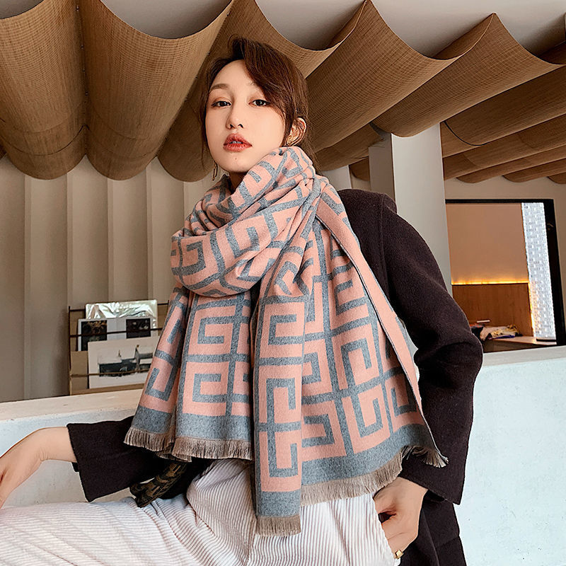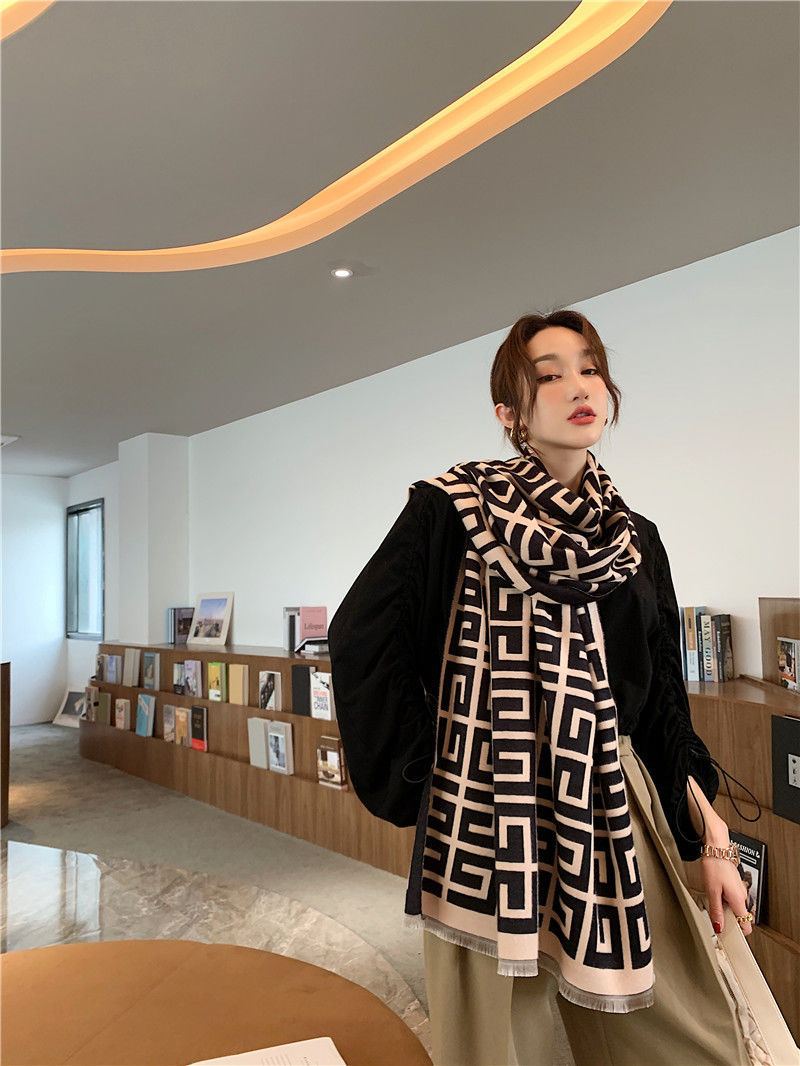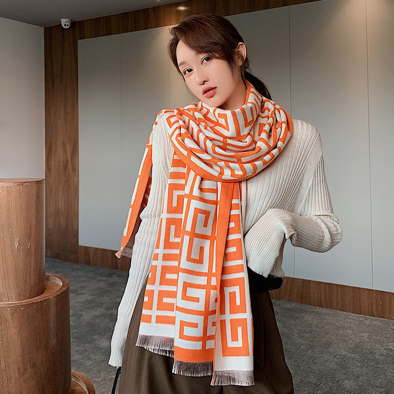 클래식 빅 G 캐시미어 양면 스카프 여성의 가을과 겨울 두꺼운 따뜻한 올 매치 듀얼 사용 스카프 Ins 트렌디 한 대형 목도리스토어 가기