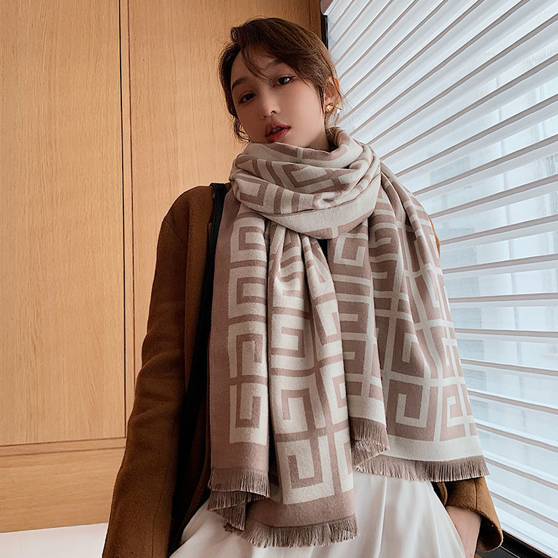 클래식 빅 G 캐시미어 양면 스카프 여성의 가을과 겨울 두꺼운 따뜻한 올 매치 듀얼 사용 스카프 Ins 트렌디 한 대형 목도리