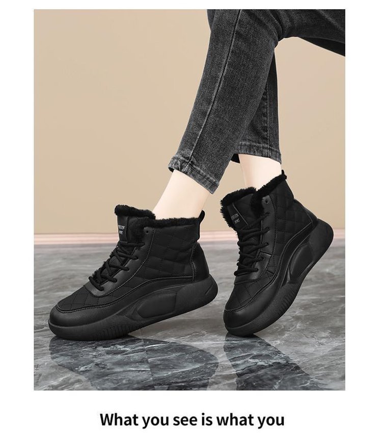가을과 겨울 기모 스노우 부츠 여성용 따뜻한 야외 부츠 콜드 방지 하이 탑 신발 노스 안티 냉동 쇼트 튜브 마틴 부츠