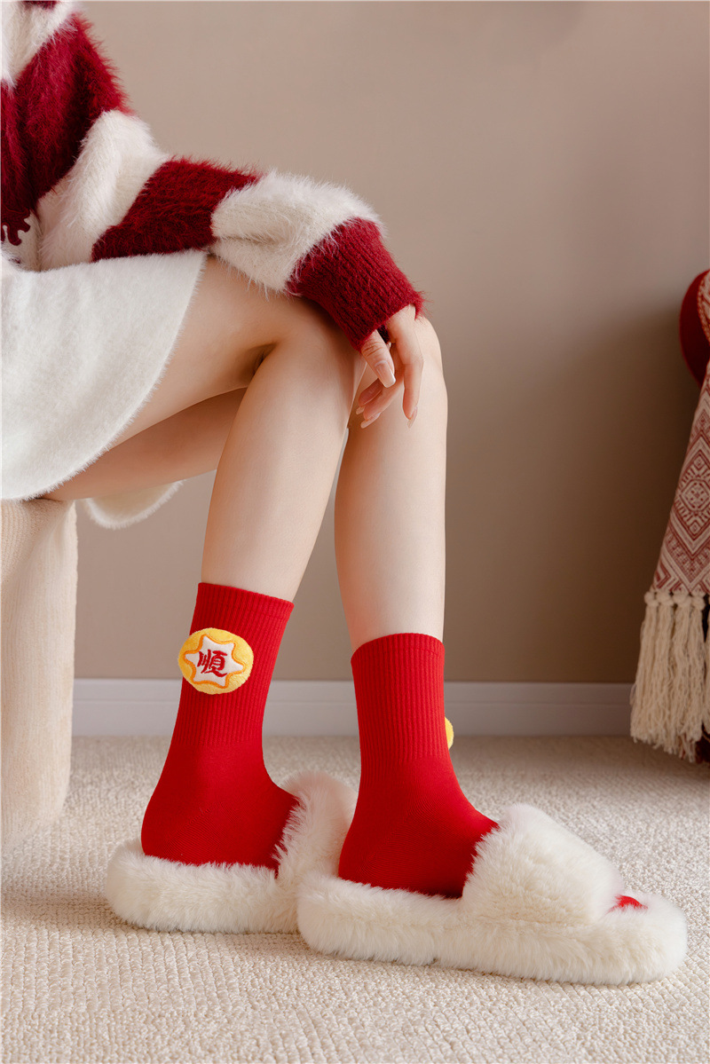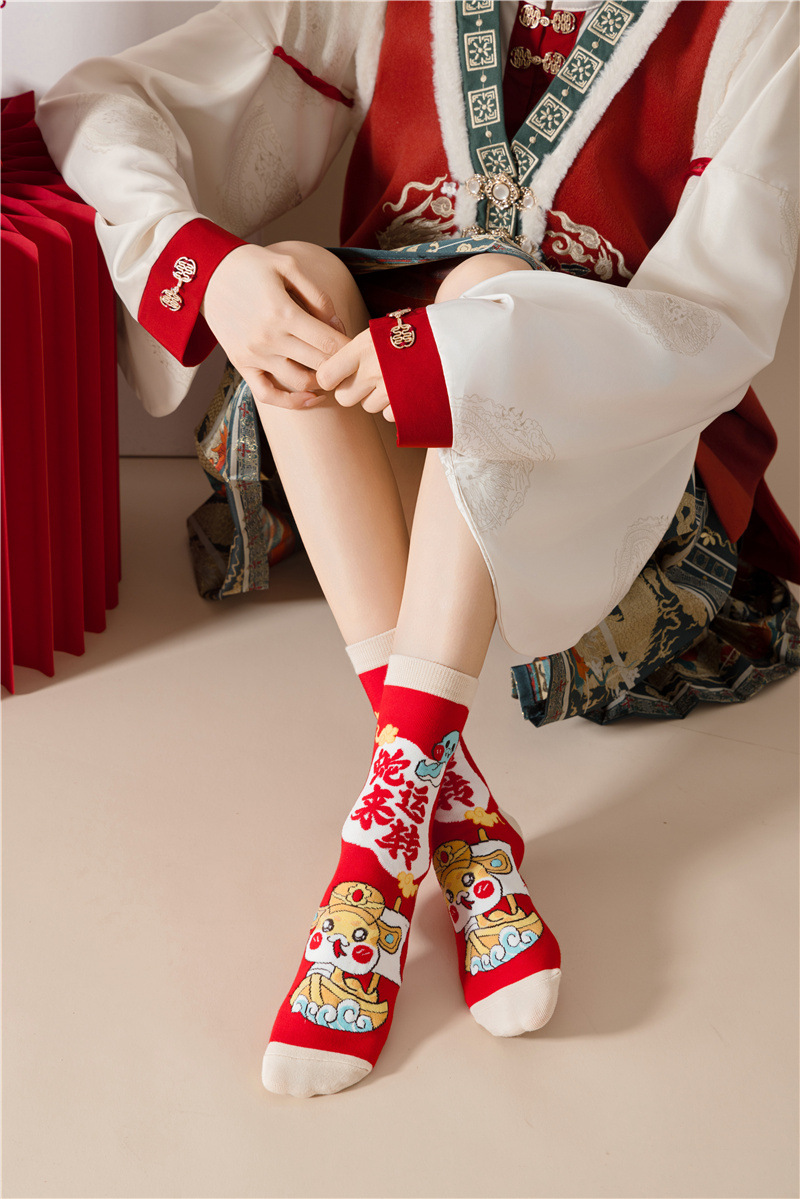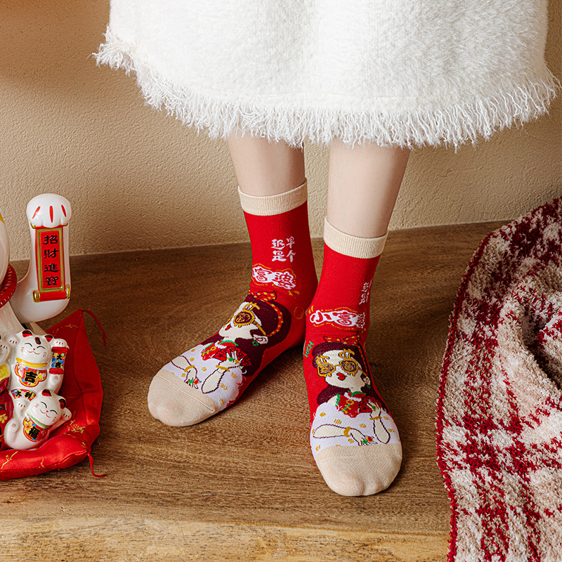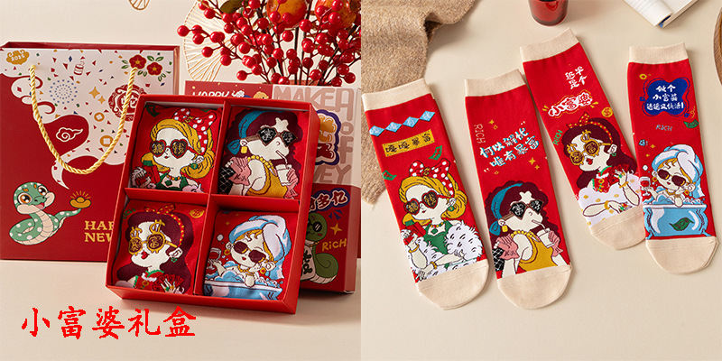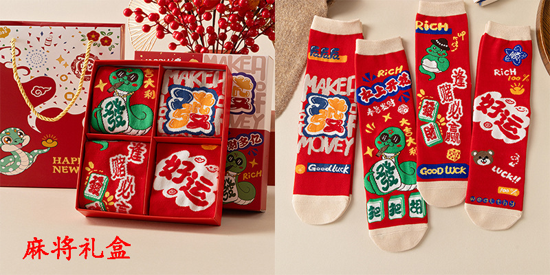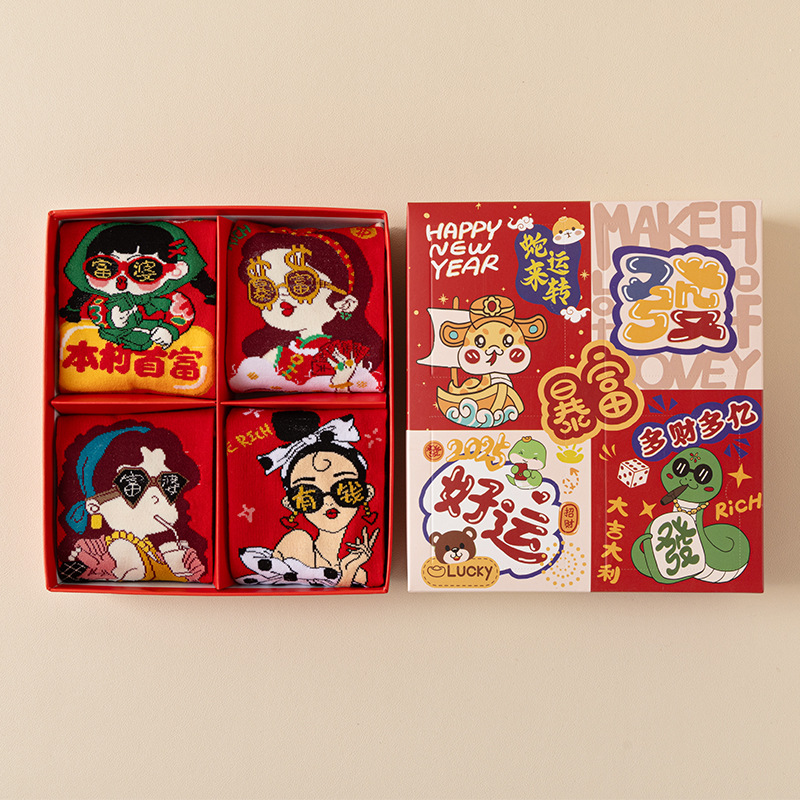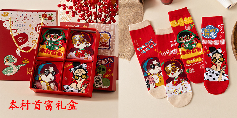 2025 년 뱀 새해 양말 선물 올해 빨간 양말 여성 뱀이 선물 상자 남자의 큰 빨간 튜브 양말을 실행합니다