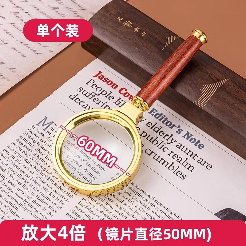 델리 돋보기 복고풍 금속 프레임 나무 손잡이 노인을위한 LED 조명 독서 돋보기 휴대용스토어 가기