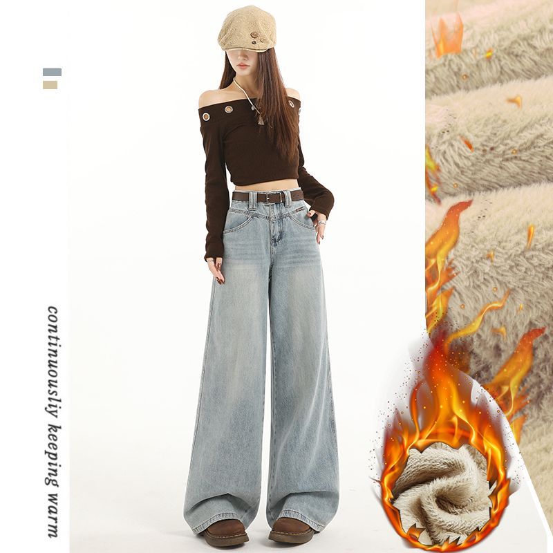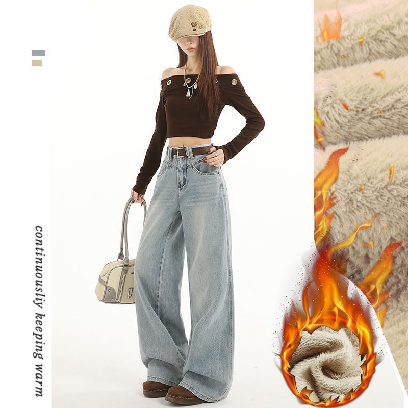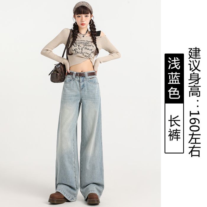 연한 파란색 하이웨이스트 와이드 레그 청바지 여성용 2025 가을 겨울 연한 파란색 하이웨이스트 와이드 레그 롱 청바지스토어 가기