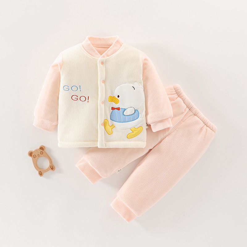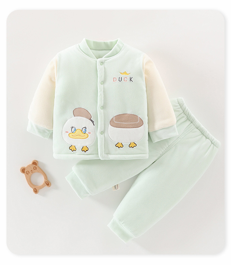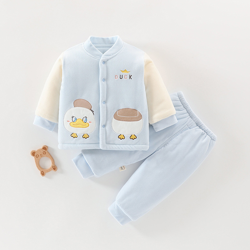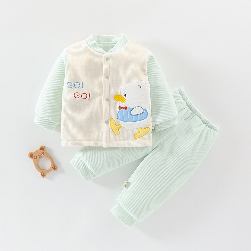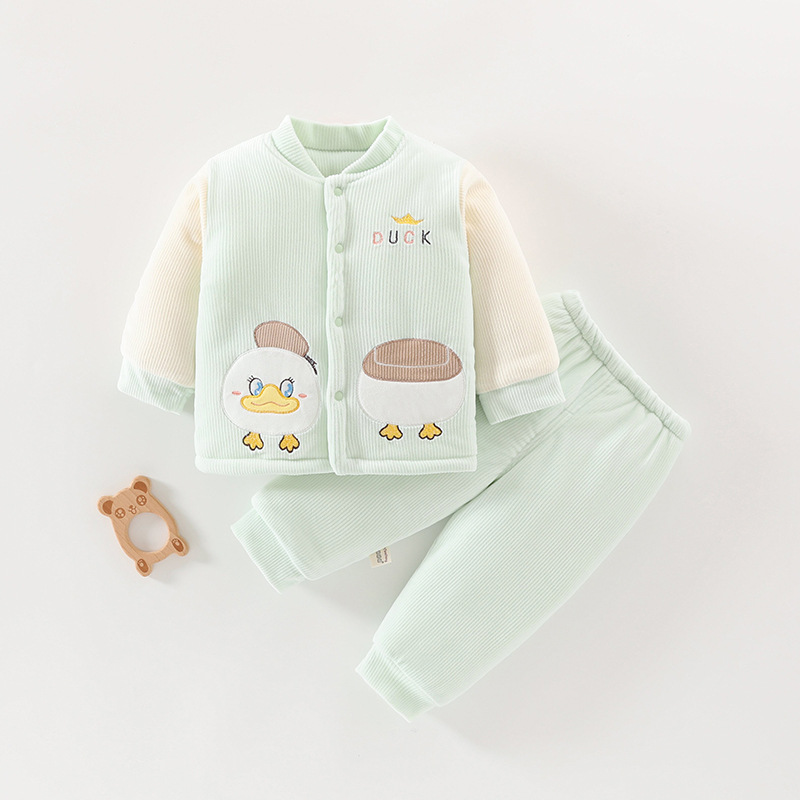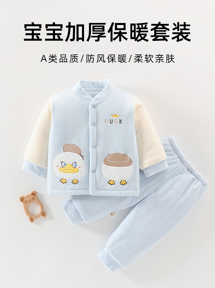 아기 겨울 옷 세트 소년 소녀 아기 코튼 패딩 코트 두꺼운 기모 분할 된 투피스 세트 가을과 겨울 아우터웨어