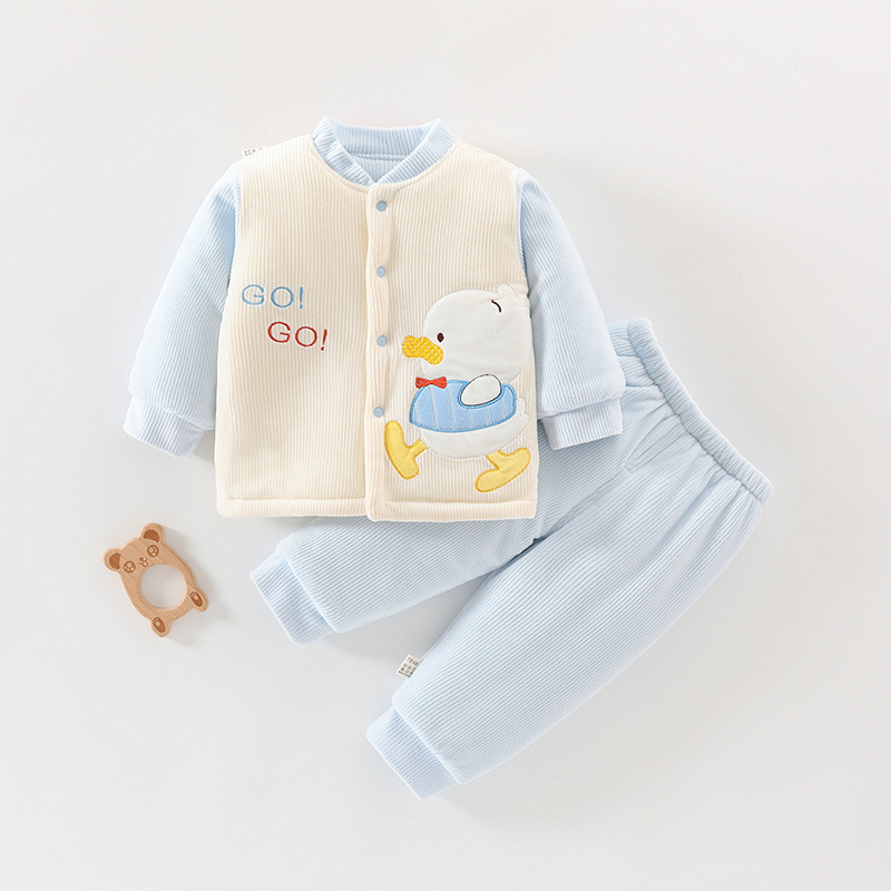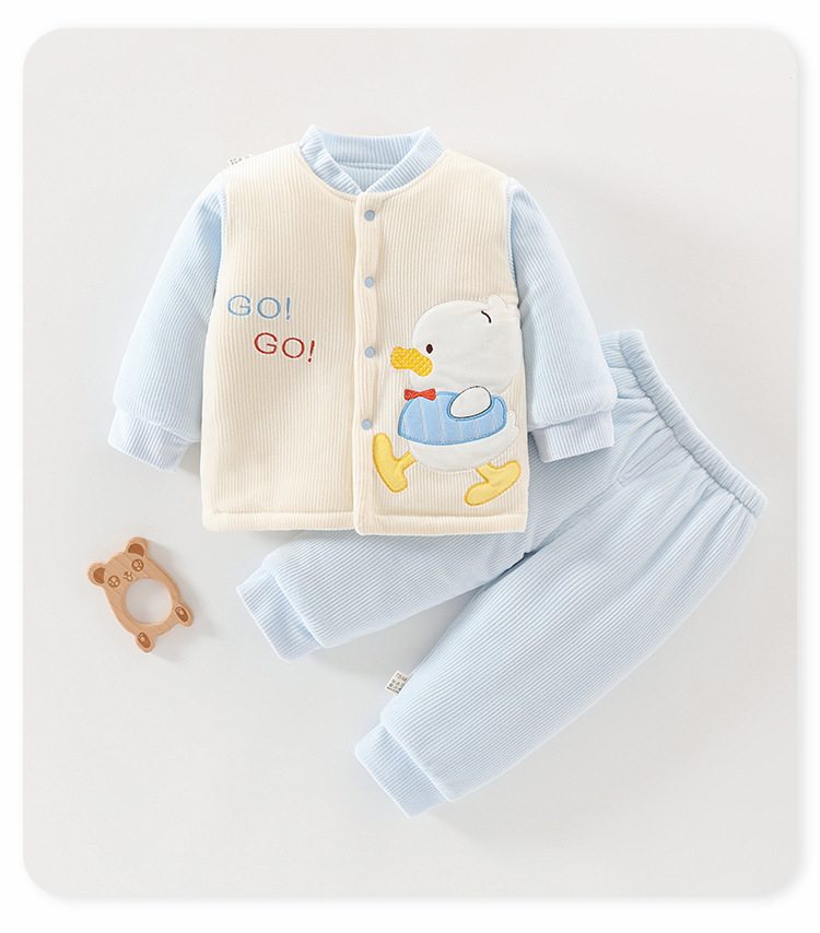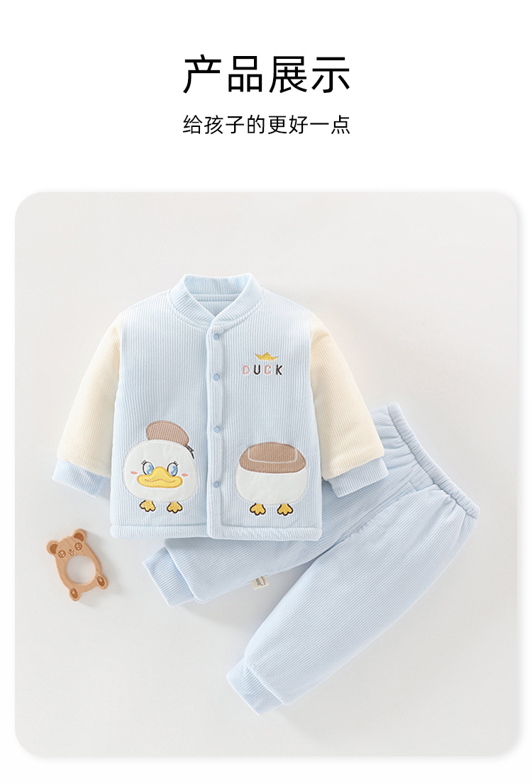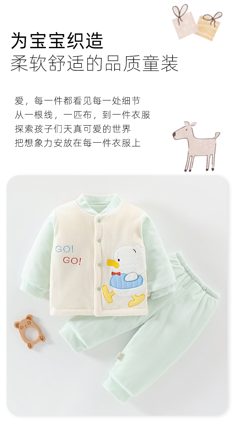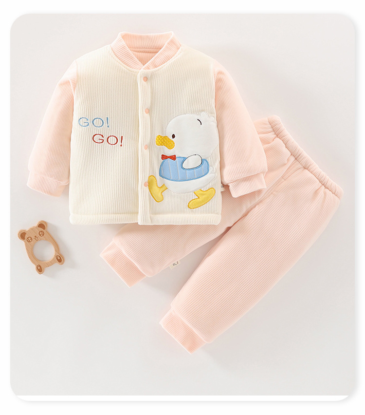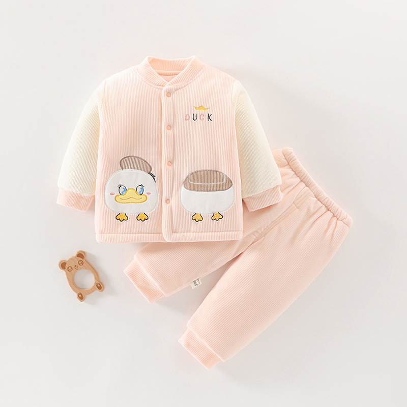 아기 겨울 옷 세트 소년 소녀 아기 코튼 패딩 코트 두꺼운 기모 분할 된 투피스 세트 가을과 겨울 아우터웨어