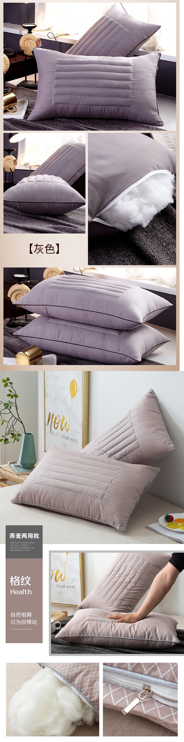 • 회색 격자 메밀 이중 용도 베개 [표준 높이 베개]♜★