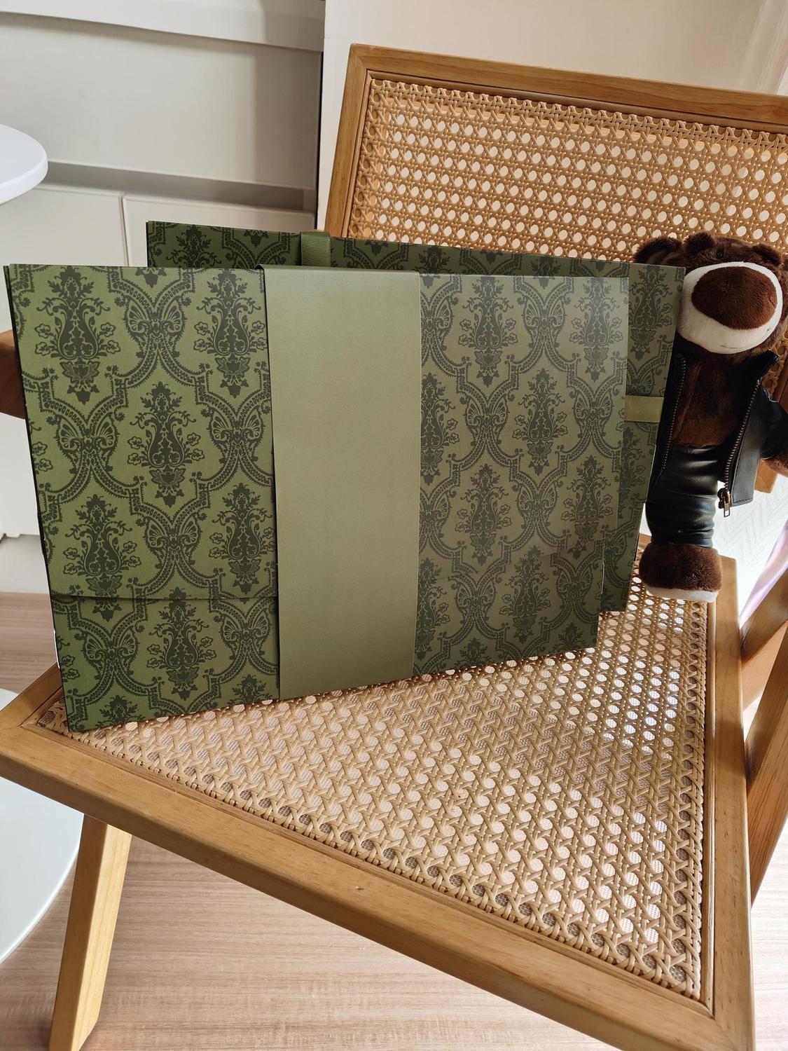 • 40*30*5(높이) cm 리본이 달린 복고풍 녹색 상자 + 선물 가방 + 시드니 종이 + 거들/1 세트