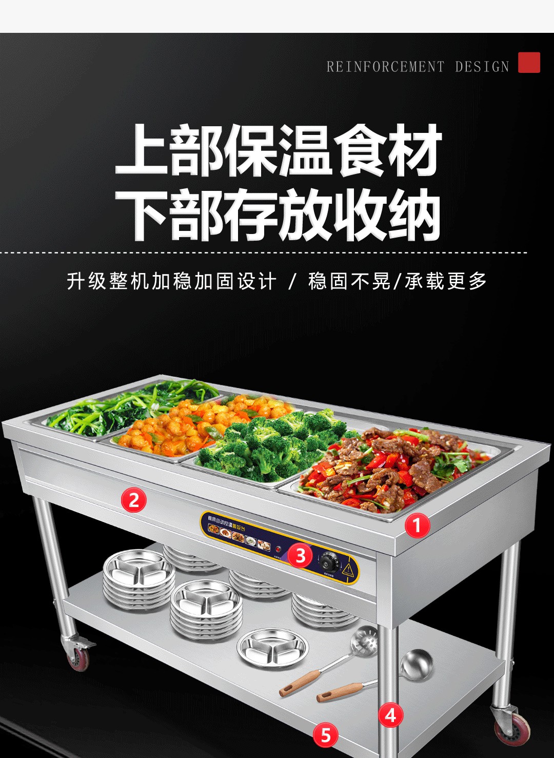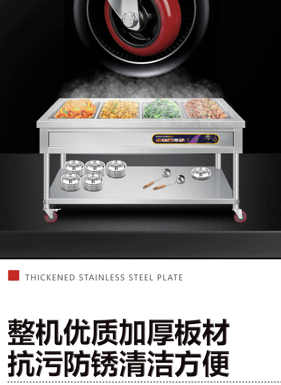 패스트 푸드 단열 테이블 상업용 스테인레스 스틸 단열 수프 풀 매점 요리 뜨거운 음식 판매 테이블 단열 식당스토어 가기